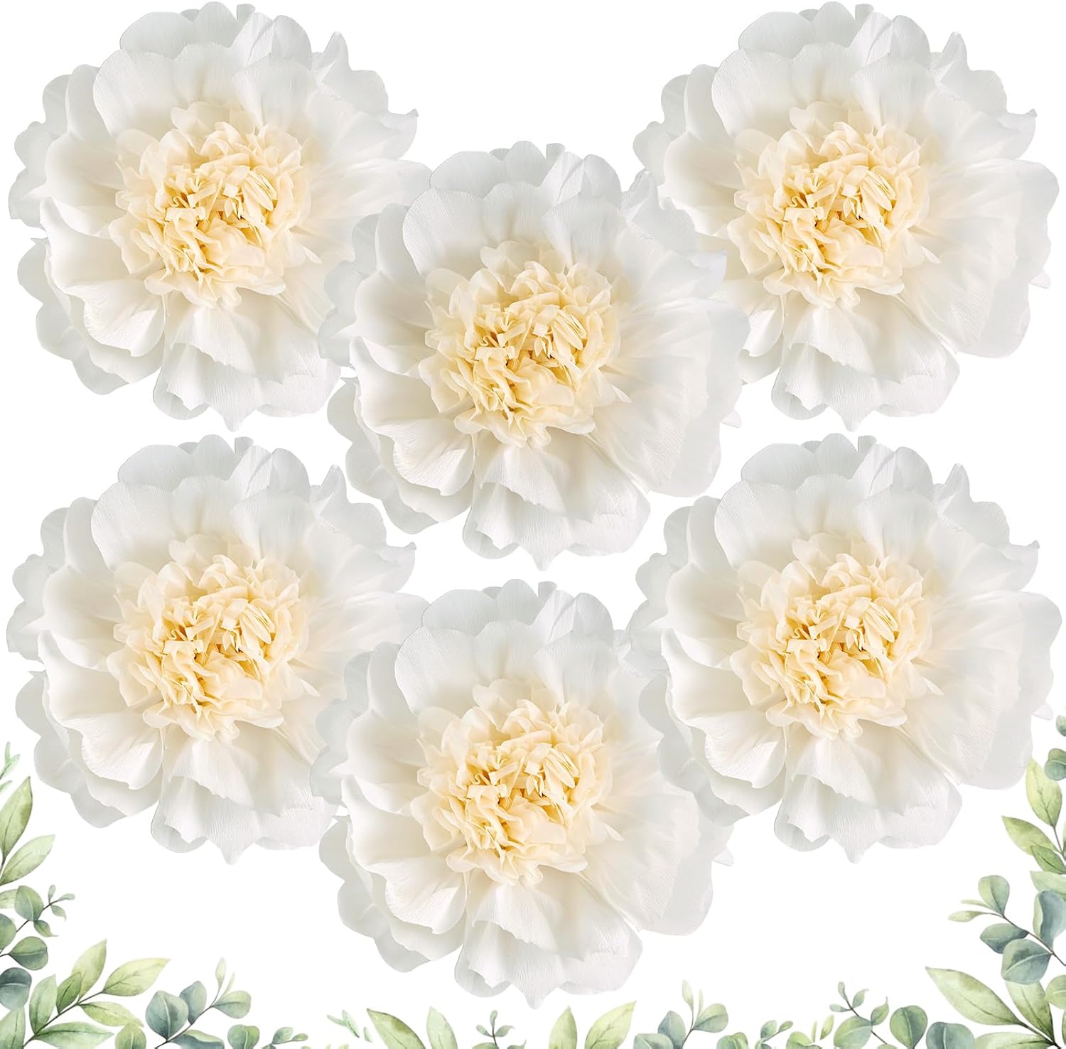 - 💮【FRESH LARGE PAPER FLOWERS DECORATION】: These 6 PCS 12-inch Giant White Paper Flowers are designed for versatile use; adding a burst of elegance and cheer to any space. These artificial decorations can be hung for a festive look, or adhered to a wall or outdoors for decoration! These Large Crepe Paper Tissue Flowers are perfect for any event.
