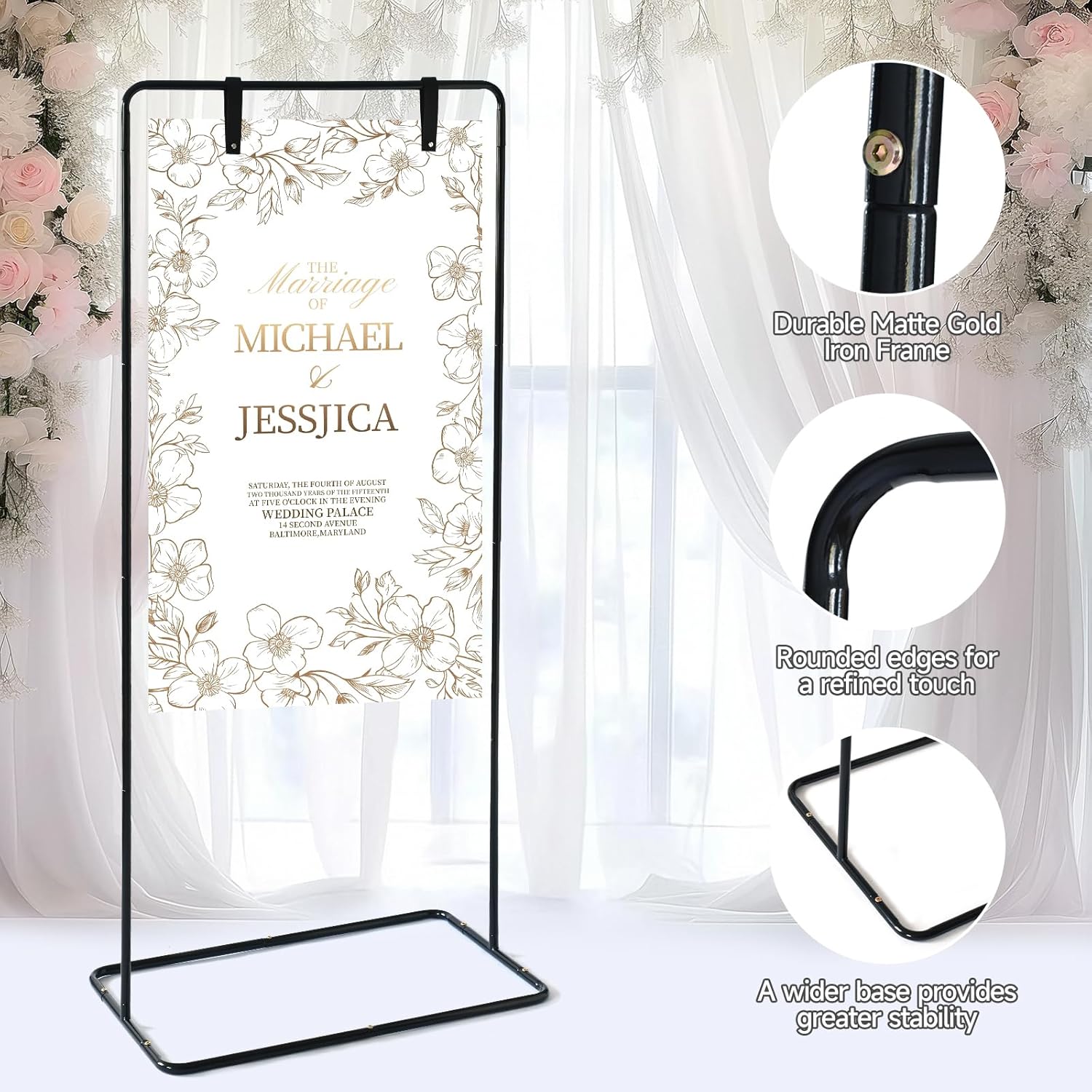 - Elegant & Functional β The minimalist black/white/gold frame complements any wedding theme or event decor. Use it for welcome to our wedding sign, directional arrows, or custom wedding signage.