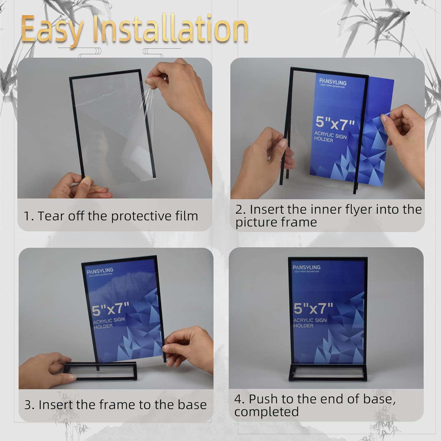 - 【Classic Black Picture Frames】Pansyling Acrylic picture frames are featuring a sleek and modern design with the black border(plating, not metal). Crystalline frame displays signage or photos clearly, and the black trim makes them the perfect centerpieces, looks more sophisticated.