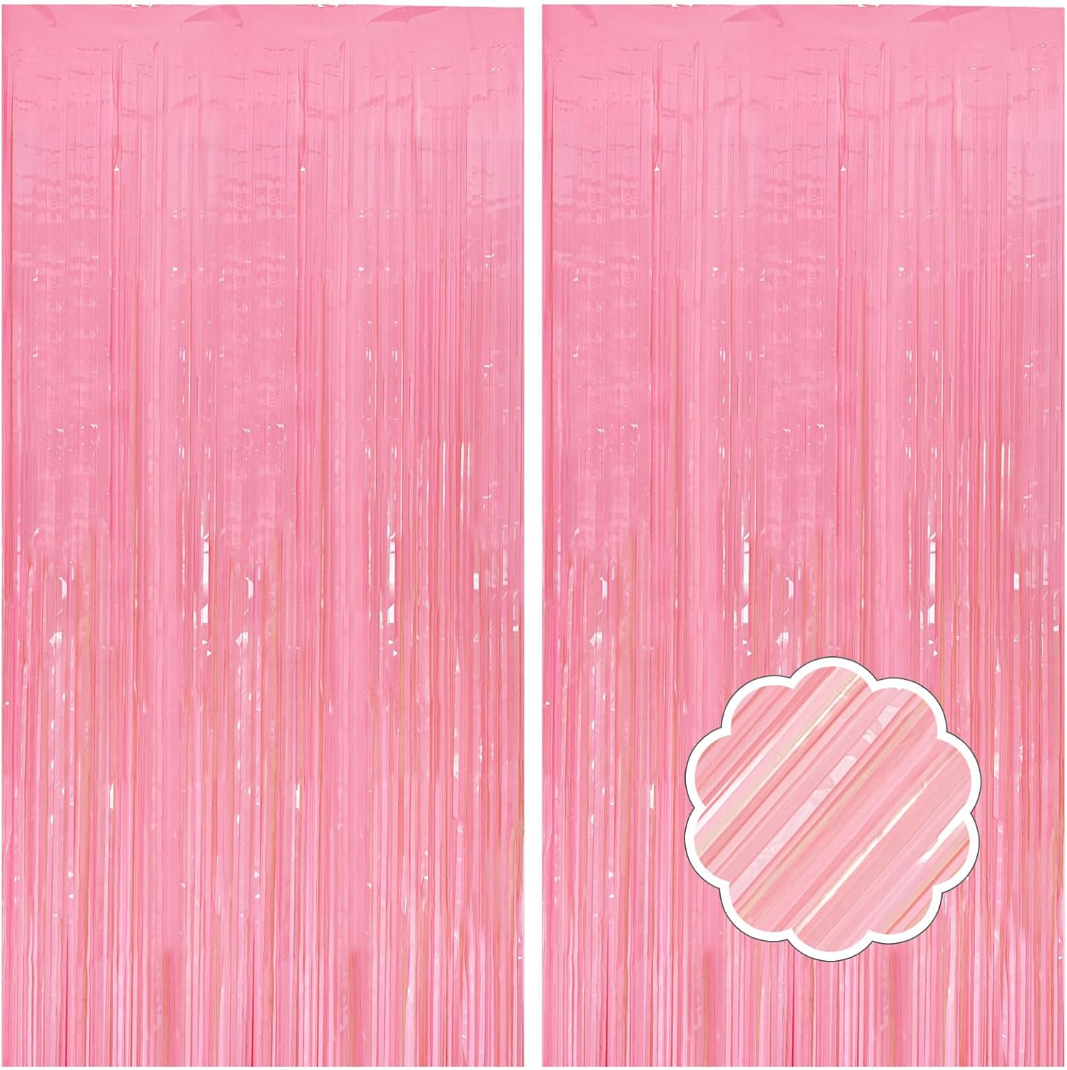 - Pink Fringe backdrop Set (2-Pack): Each dazzling curtain measures 3.28ft x 6.56ft – perfect for doors, walls, or photo booths! These extra-long foil streamers instantly transform any space into a party-ready celebration zone. Mix, layer, and customize your decor for the best results.
