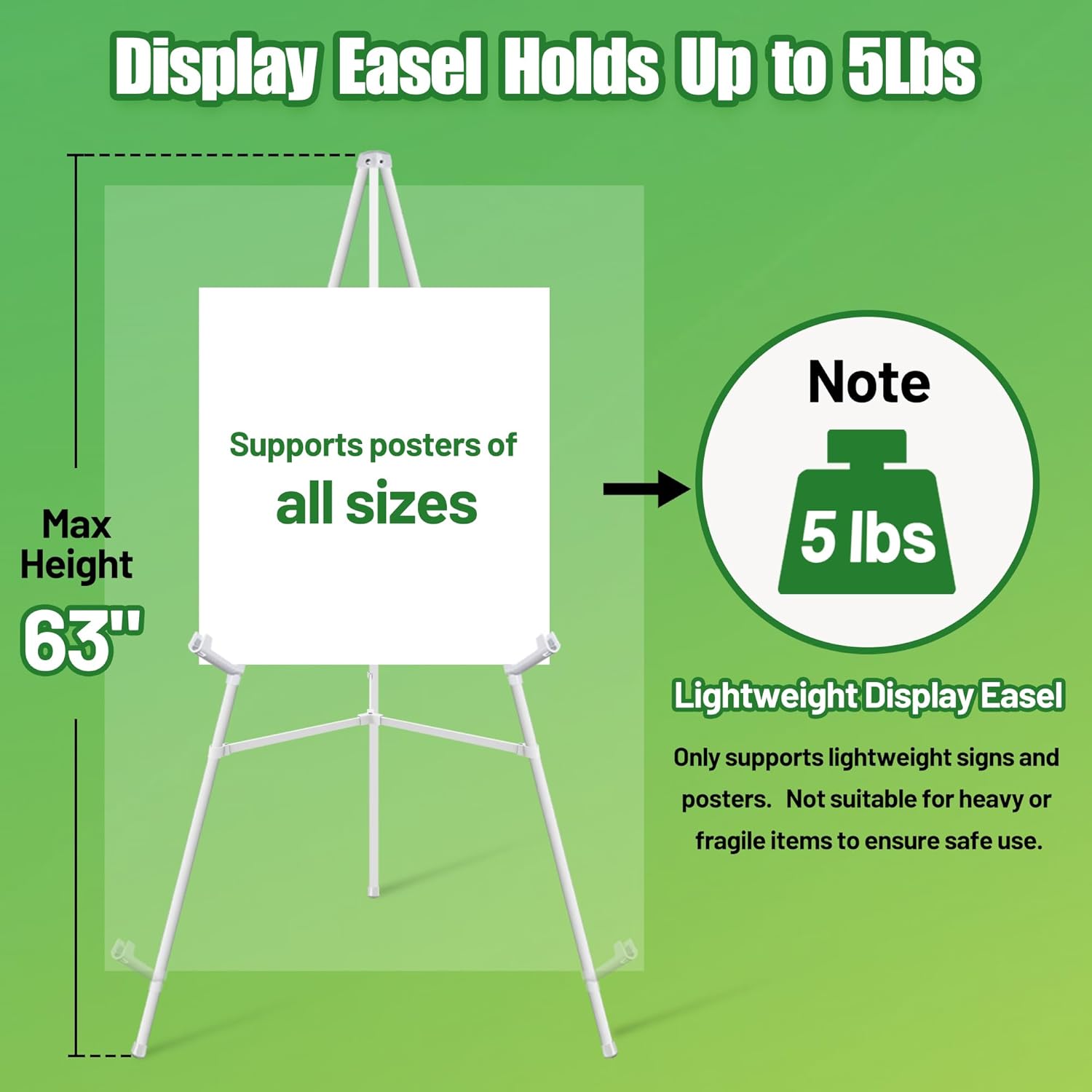 3 Pack White Easel Stand for Sign - 63" Adjustable Folding Floor Easels for Wedding Sign, Welcome Sign, Poster, Picture, Painting - Lightweight Portable Display Easels with Bags, Holds 5 lbs
