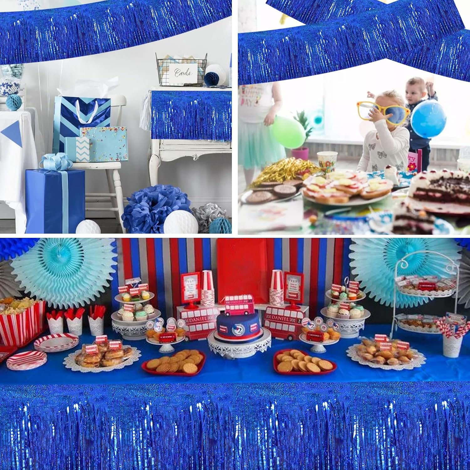 BEISHIDA 3 Packs Metallic Foil Fringe Garland Laser Blue Wall Hanging Tinsel Fringe Banners for Car Floats Bridal Shower Wedding Birthday Easter Graduation Holiday Party Decoration(30 Feet)