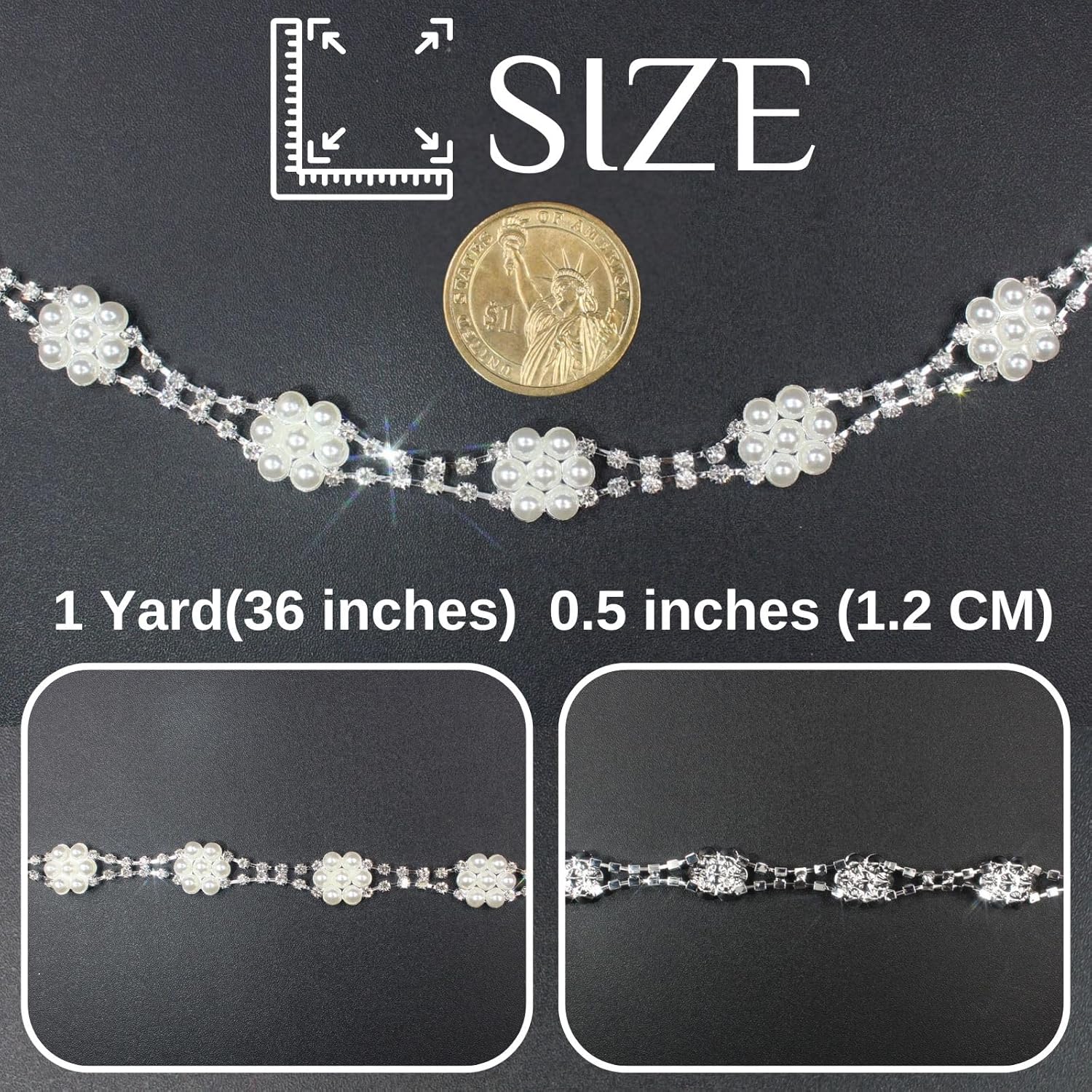 - Premium Materials: Crafted with real rhinestones, pearls, and a sturdy copper base, this trim chain features secure, durability settings that keep gems in place no shedding or falling off, even with frequent use