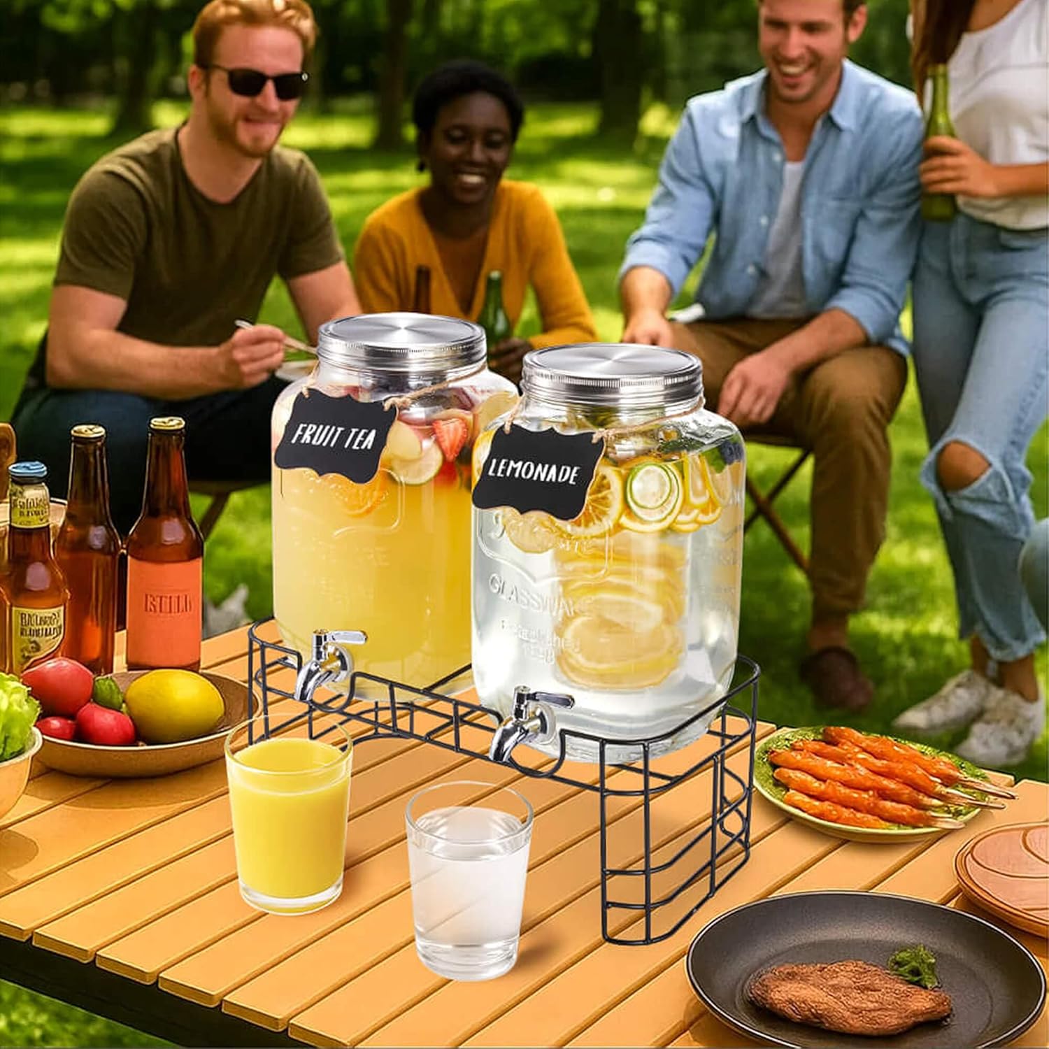 - Large Capacity for Continuous Serving - Each dispenser holds 2 gallons—twice the size of most 1-gallon dispensers on the market. These large glass drink dispensers for parties are perfect for weddings, BBQs, and family gatherings, allowing multiple guests to enjoy drinks without the need for constant refills.