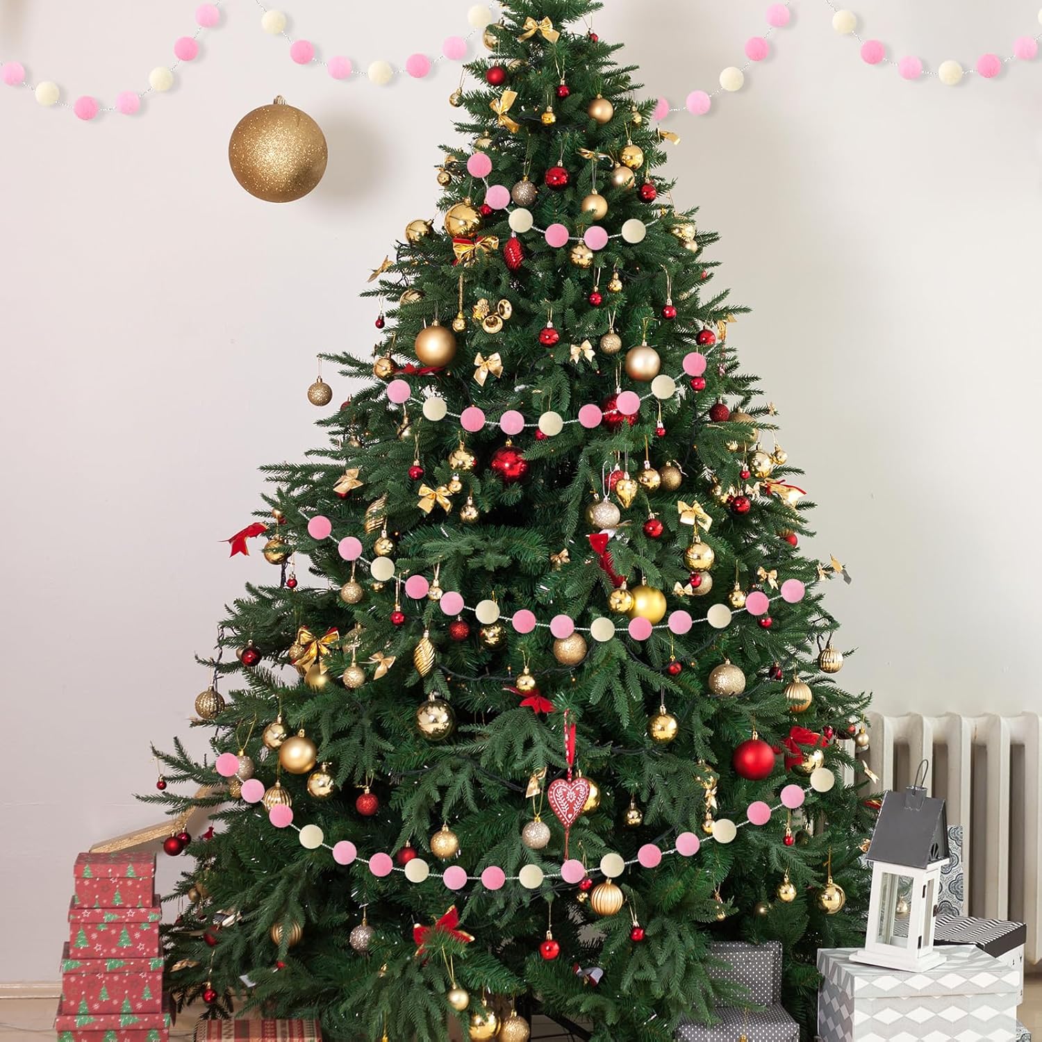 3 Pack Pom Pom Garland Colorful Felt Ball Garland Decorations, 6.5 Feet Long with 30 Balls Banner Hanging Supplies for Birthday, Baby Shower, Parties (Pink & White)
