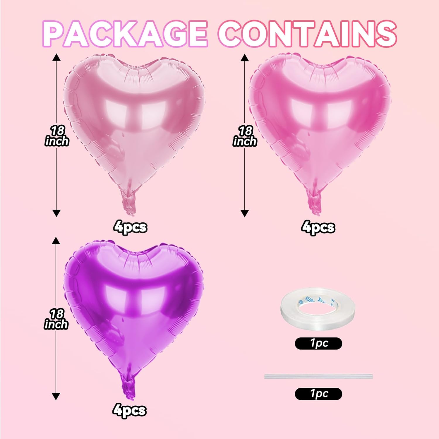 - Pink Heart Balloons:This 18 inches heart shaped balloons includes 4* hot pink heart balloons, 4* pearl pink heart balloons, 4* pink heart balloons, 1* ribbon, 1*straw, adding romance and warmth to your celebration. These large heart balloons will be the highlight of your party decorations, creating an atmosphere of love for everyone.