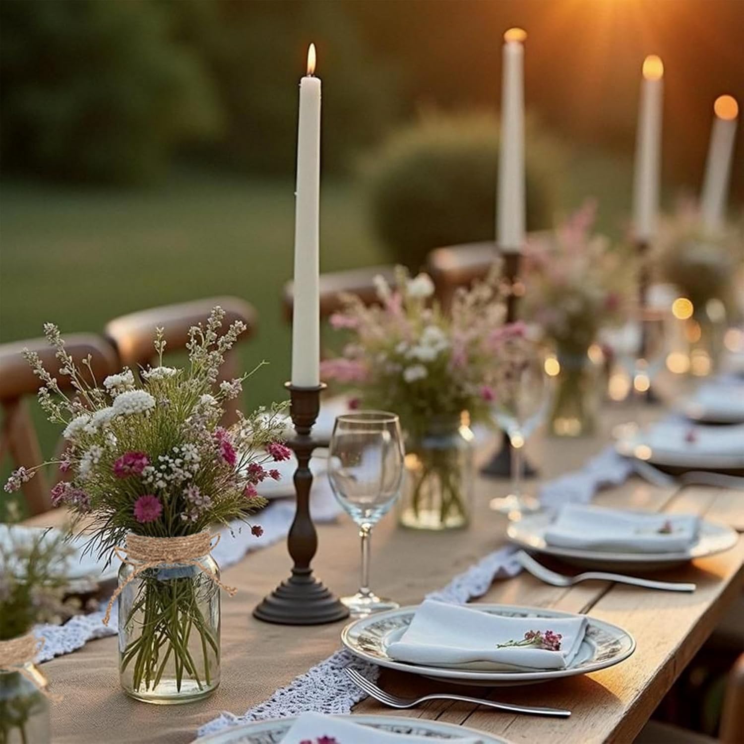- 🏺 Commercial-Grade Bulk Vases: 24-pack vintage glass centerpiece vases designed for weddings, banquets, and catering businesses. Clear mason jars offer reusable rustic charm for floral arrangements or candlelit tables