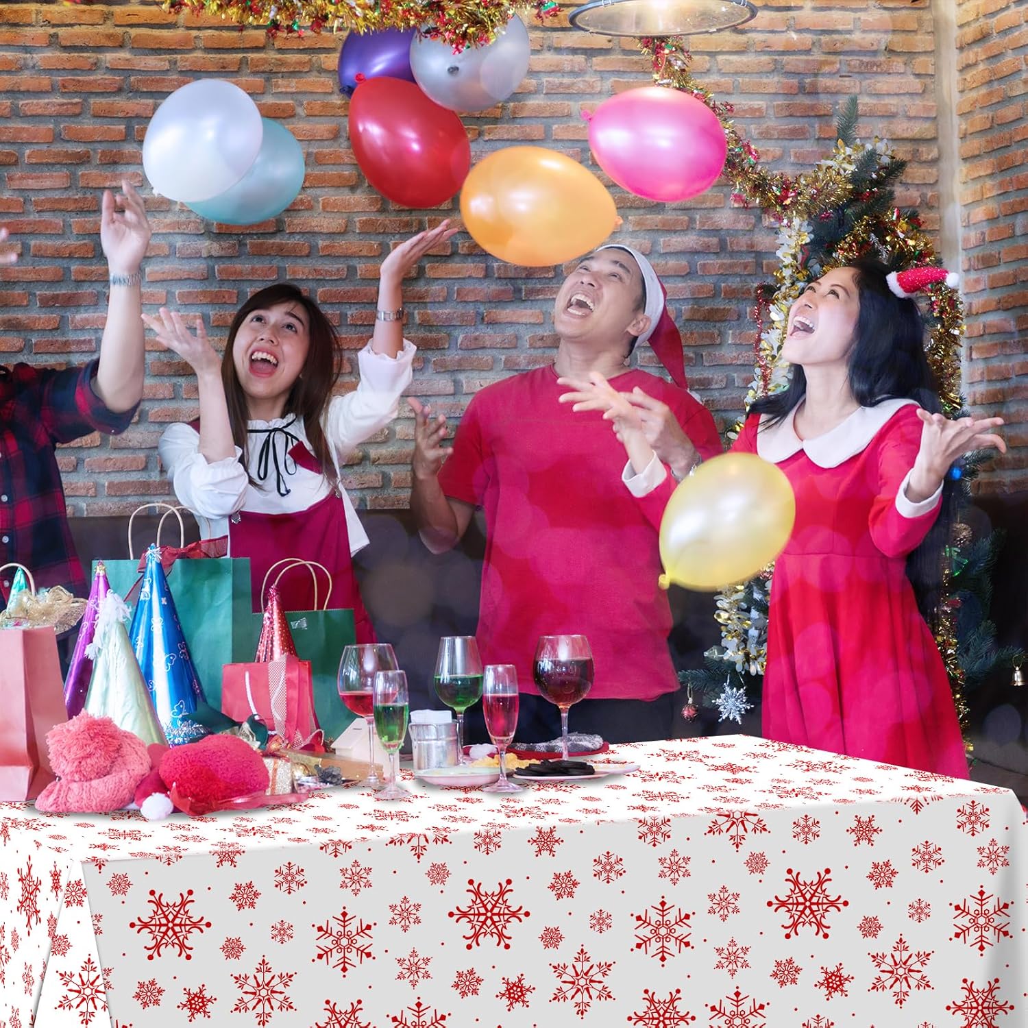 - Extra large size: these red white snowflake Christmas party tablecloth measures approx. 54 x 108 inches/ 137 x 274 cm, suitable for 8 feet long tables,which could accommodate for 8-10 people, Itโs large enough for your to hold a winter holiday and Christmas theme party with your family and friends to share happiness