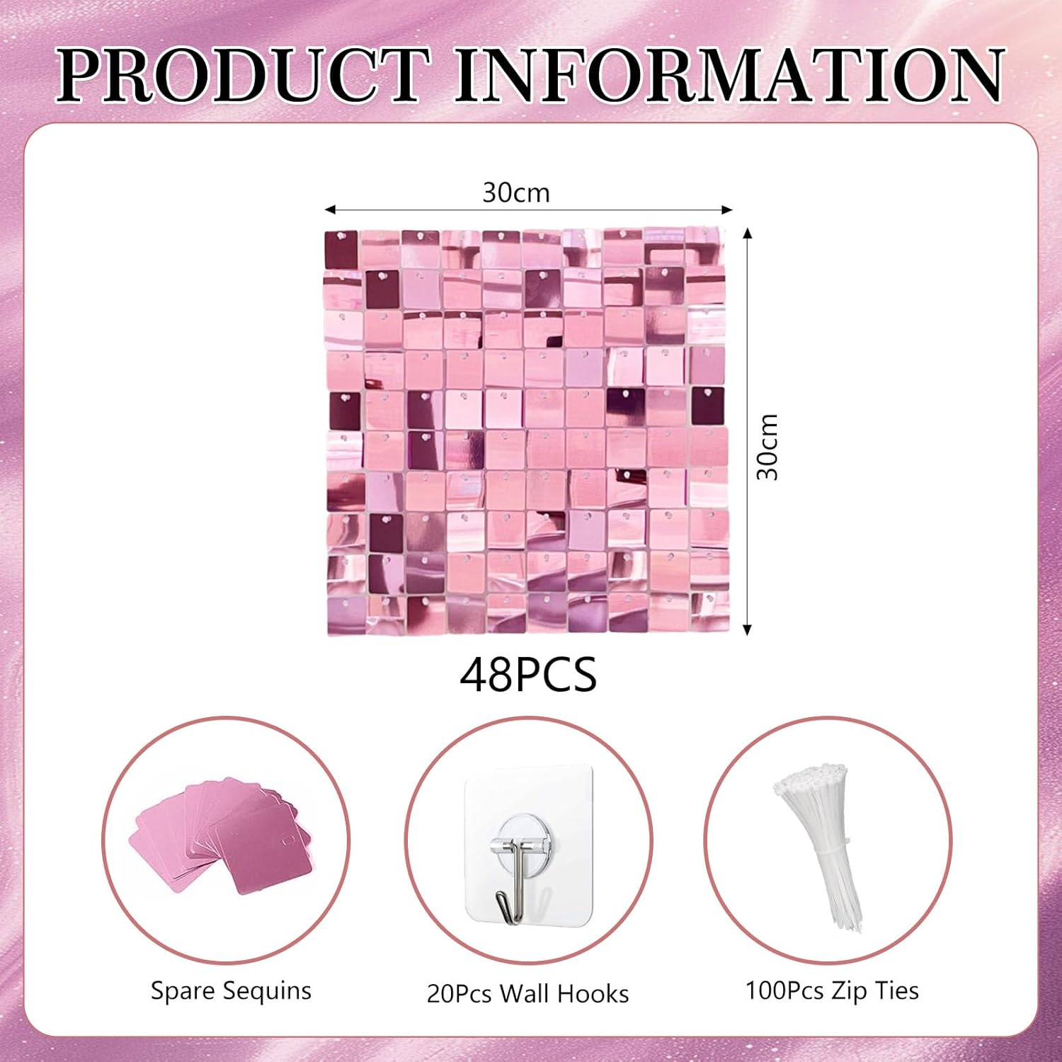 - 【Package Includes】Each box includes 12 light pink wall panels (12"x 12" each). We provide enough zip ties (100 pcs), a pack of spare sequins, and wall hooks (10 pcs) to support the weight of the wind panel, as well as an installation manual. 12pcs can cover 3x4ft place. More boxs will cover a larger area and have a fuller look.