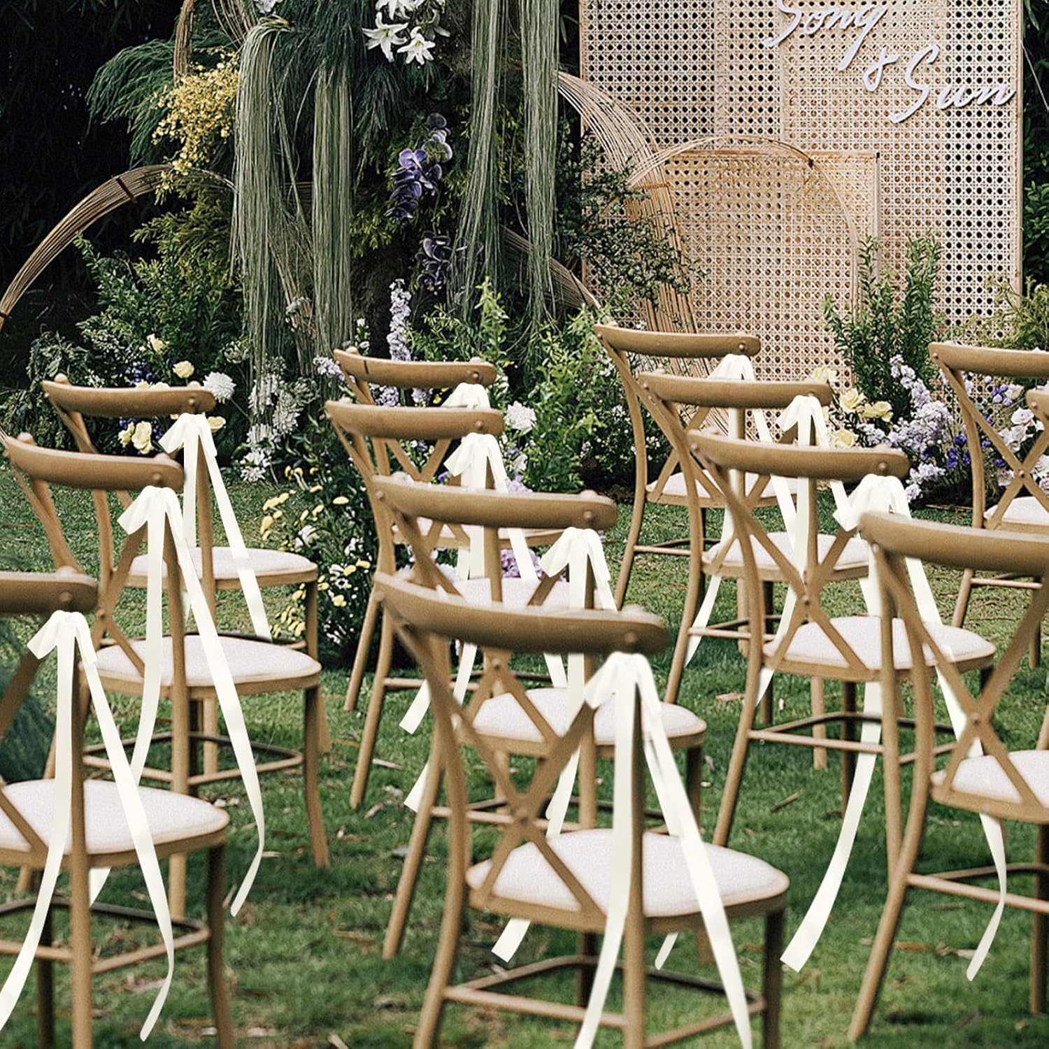 - Lightweight yet luxurious: these delicate chair bows sway gently with every breeze, weaving a dreamy atmosphere into your special day. Made from high-quality ribbon, they combine ethereal beauty with lasting resilience, adding a whisper of romance to weddings or elegant gatherings.