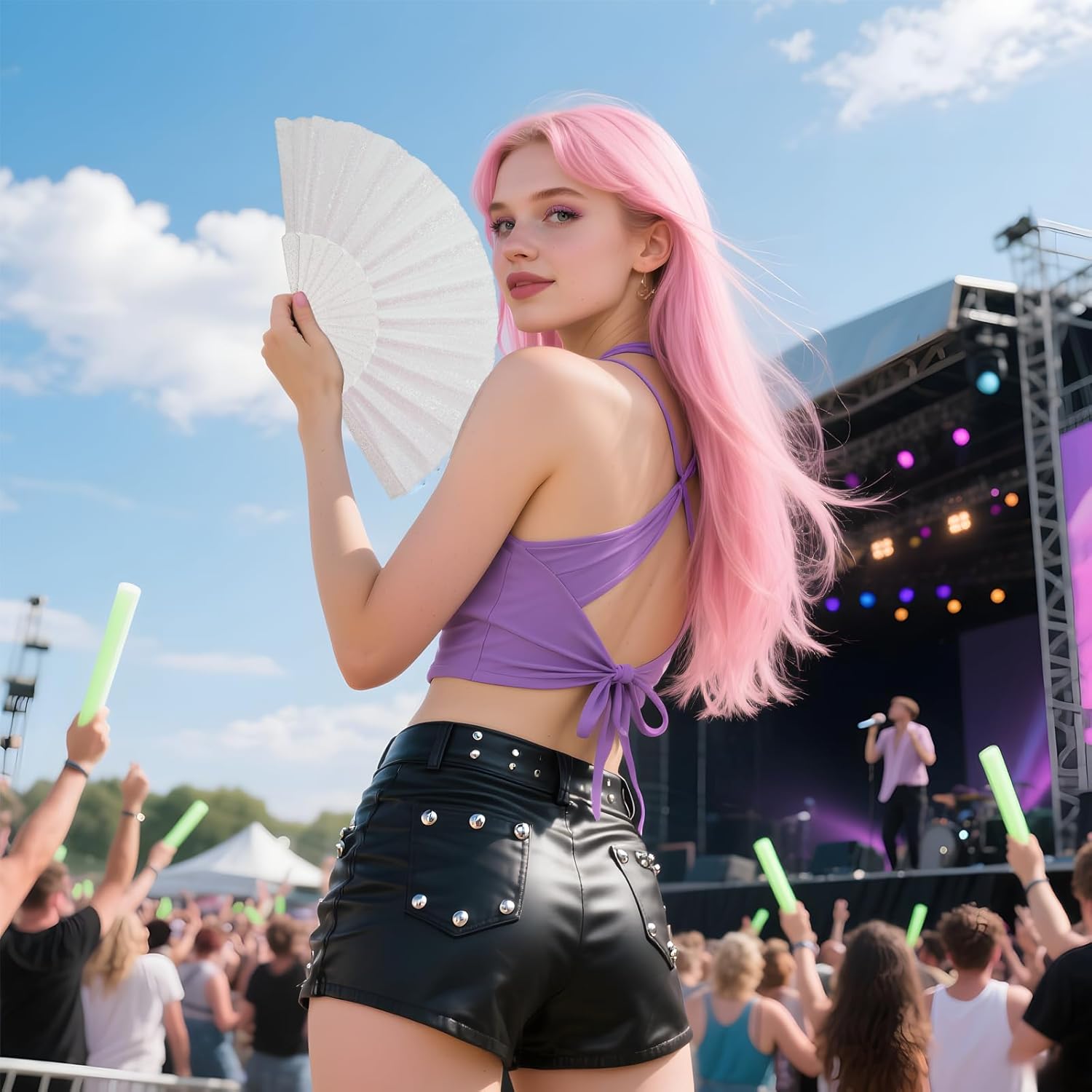 - Glitter Flashpoints Fabric & Polyester Fan Rib: Made from premium glitter flashpoints fabric and polyester fan ribs, this handheld fan features a holographic white design that makes it more attractive and elegant. It stands out as an ideal accessory for weddings, themed parties, festivals, and more.