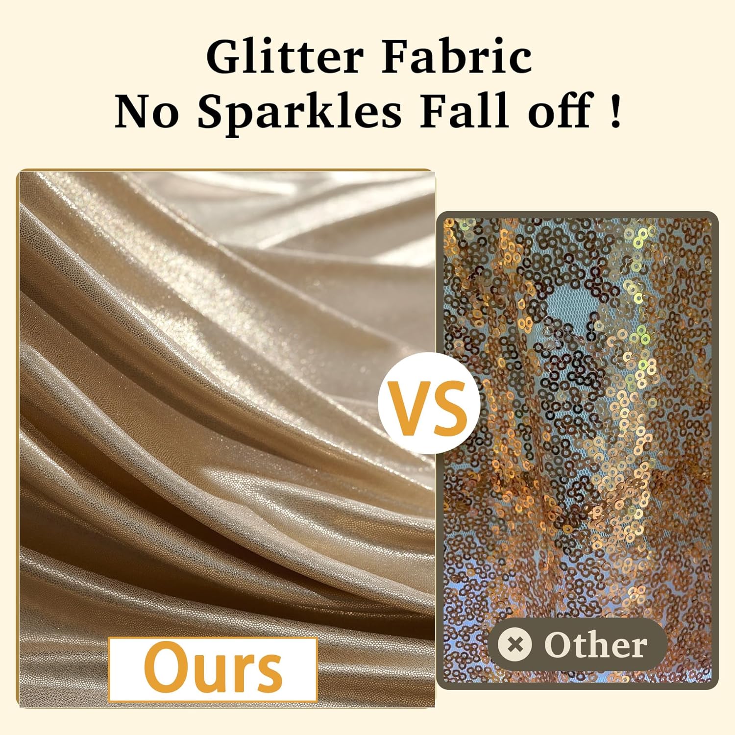 - Glitter Cloth: Made of soft and smooth polyester fabric. Backdrop drapes with bronzing technology is shiny and sparkly. No Sequin Fall OF.