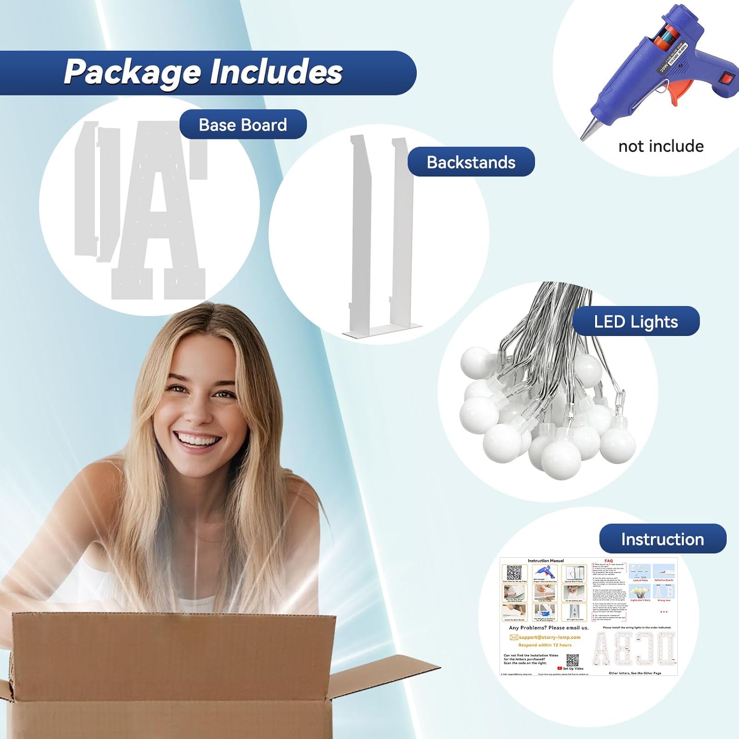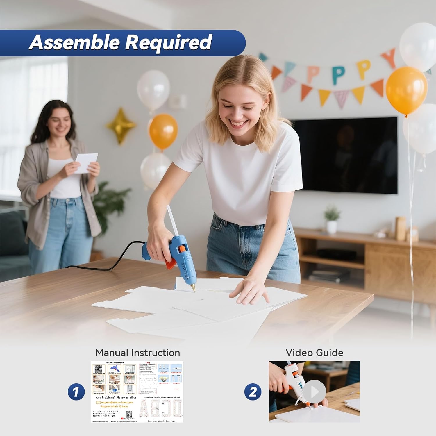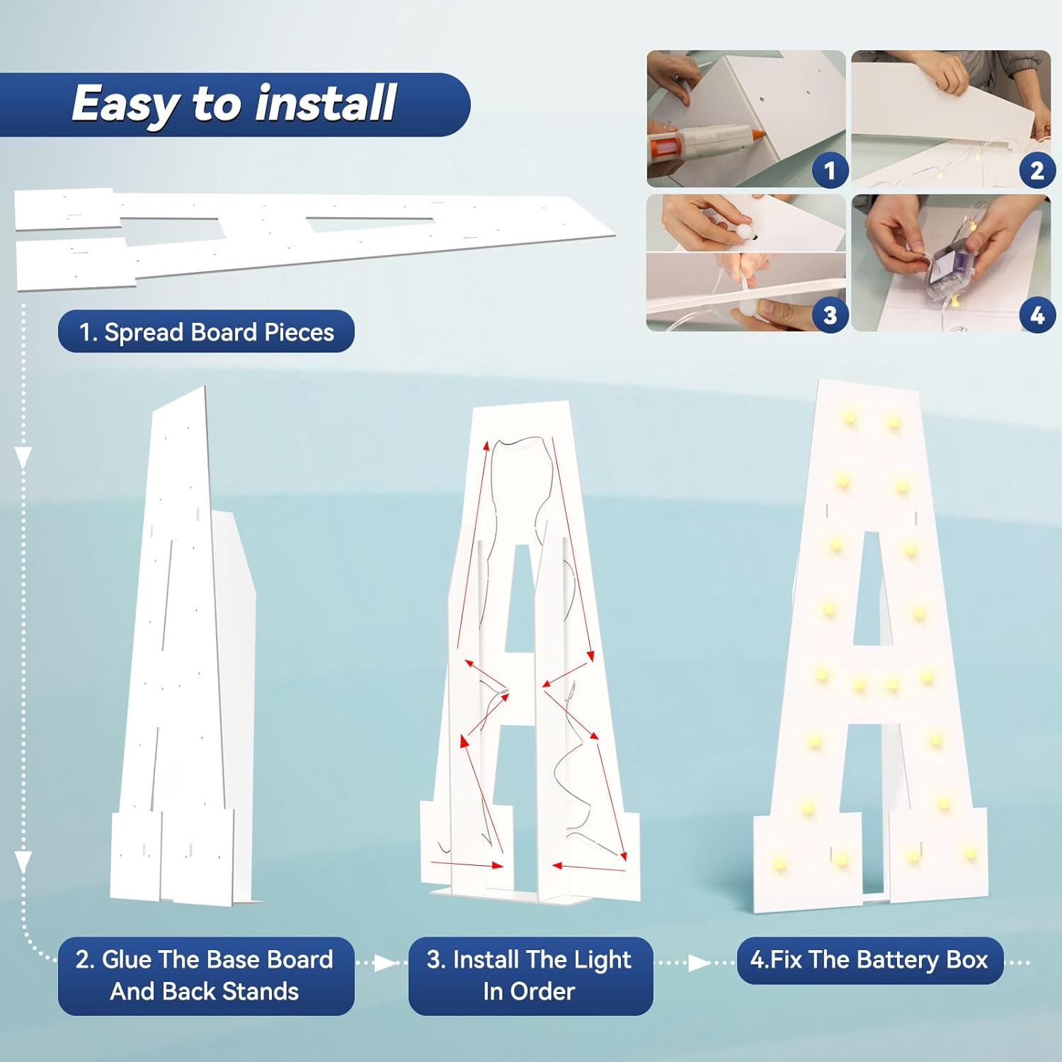 - 【Need to Assemble】: You only need to prepare hot glue gun and glue. Pre-cut Large Light up Letters design making assembly more easier and faster. Just glue the base board and assemble the led string lights. Decorate your party with your child or friends and have fun