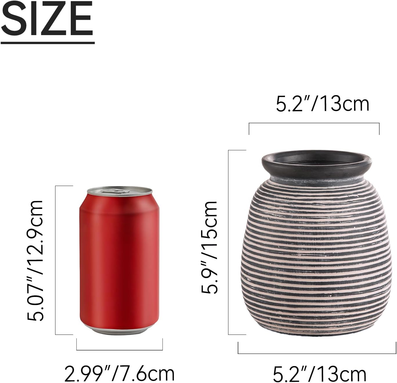 - For Multiple Home Décor Styles --- These decorative vases has excellent decorative effects due to its unique shapes and colors, which is the perfect home décor even without flowers. Whether your style is bohemian, modern farmhouse, rustic, or homey, they all fit in perfectly show off your lifestyle and decorative sense of style.(Length x Diameter=6 x 5.2").
