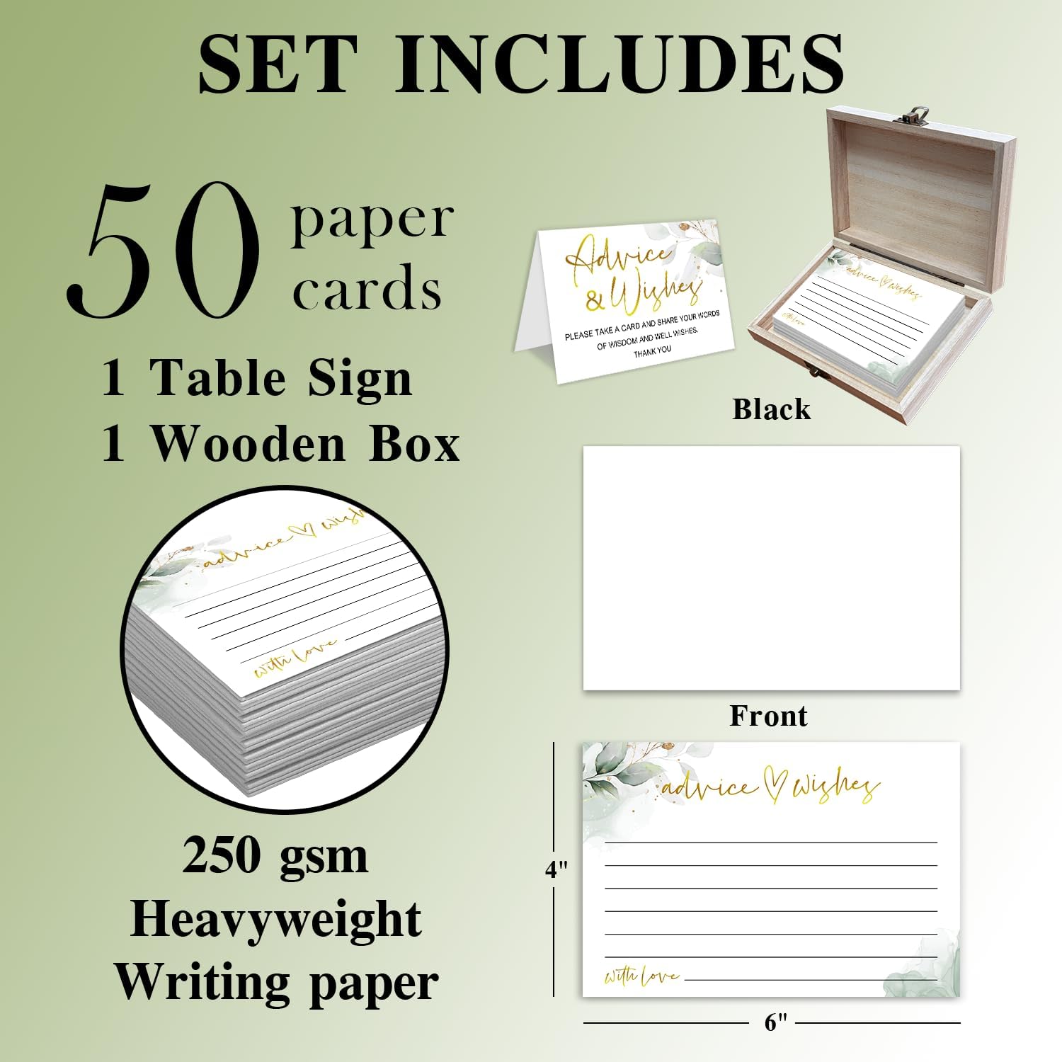 Watercolor Advice and Wishes Cards with Box - 50 Pcs Eucalyptus Advice Cards for Wedding, Bridal Shower, Baby Shower, Well Wishes Box for Graduation, Christmas, Birthday Party Decorations -A05