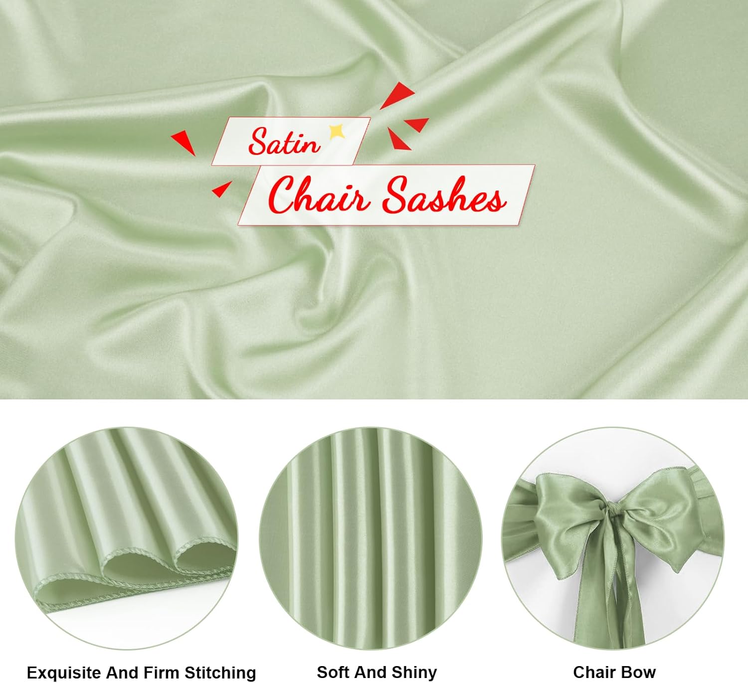 Satin Chair Sashes Bows Universal Chair Ribbon Ties Back Sash for Wedding Party Reception Events Banquets Hotel Event Chair Cover Decoration (7x108 inch) (100, Sage Green)