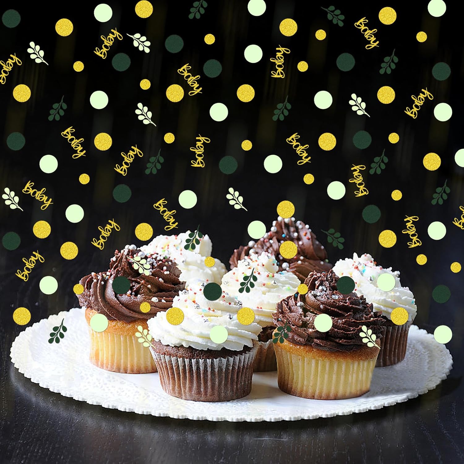 - 5.Nice green baby shower decorations.The table confetti will be surely light up your baby girl/boy birthday or baby shower party.