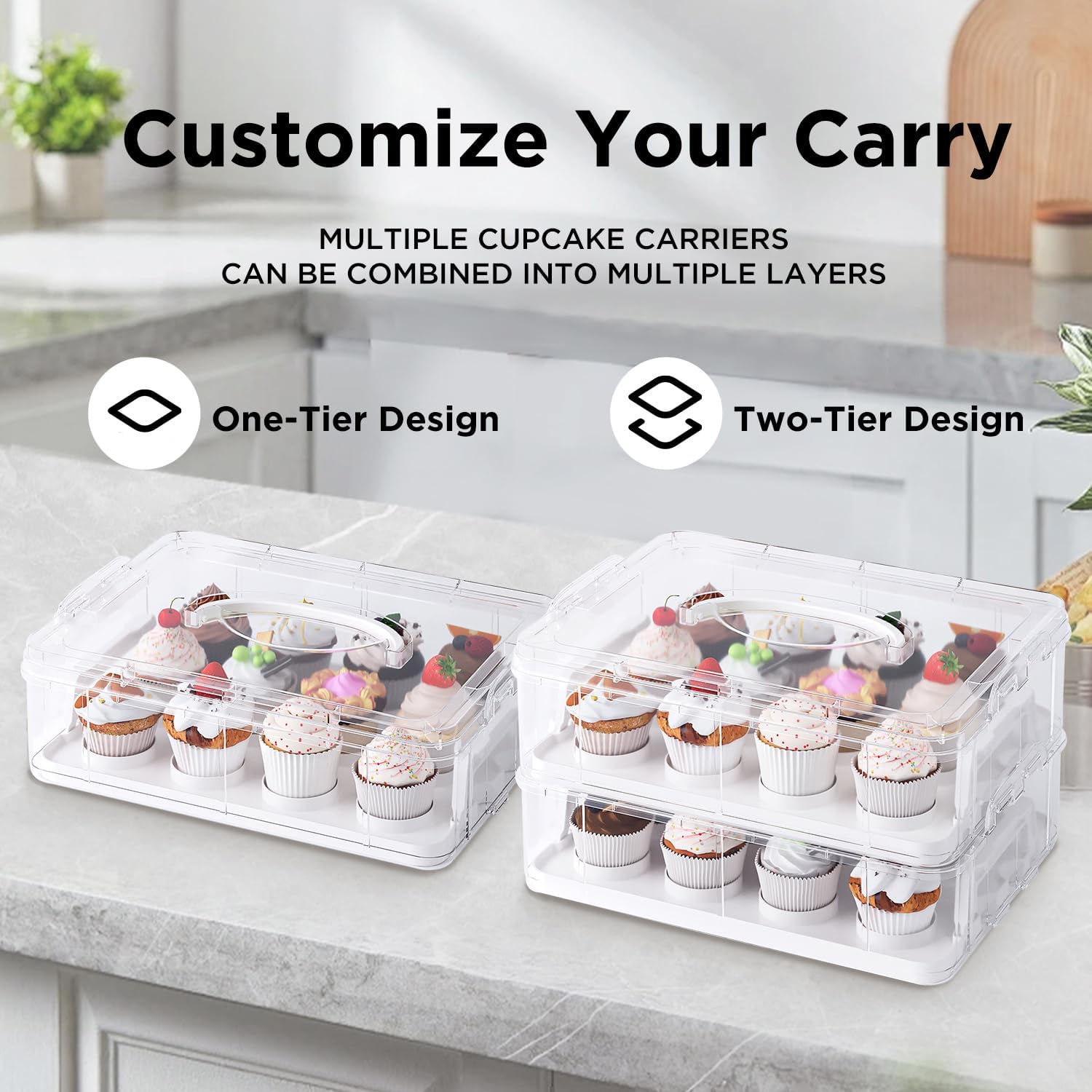- 【Secure Transport & Stackable Design】: Features a locking lid + 2 side latches to prevent spills during transit. The anti-slip base keeps the tray stable in cupcake carrier, while stackable design allows multi-unit storage.