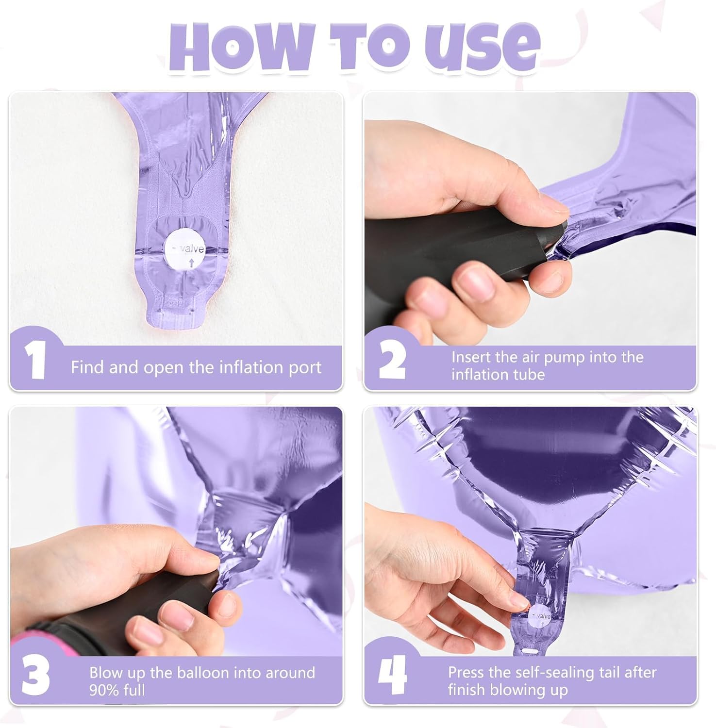 - Premium Quality β Made from high-grade metallic foil, these purple and pink balloons are sturdy, reusable, and hold helium or air for long-lasting party decorations.
