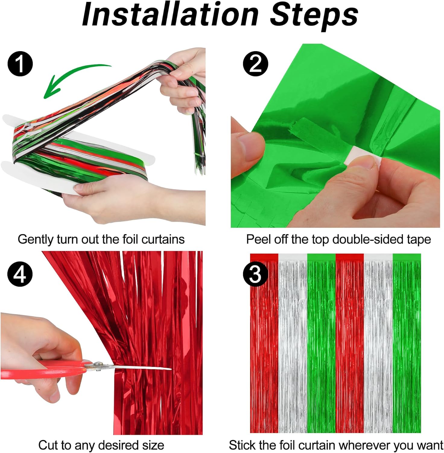 - Package Includes: This product includes 2 pcs red silver green foil curtains, each measuring 3.28 ft x 7.05 ft, the oversized size makes it easy to cut to the right length as needed.