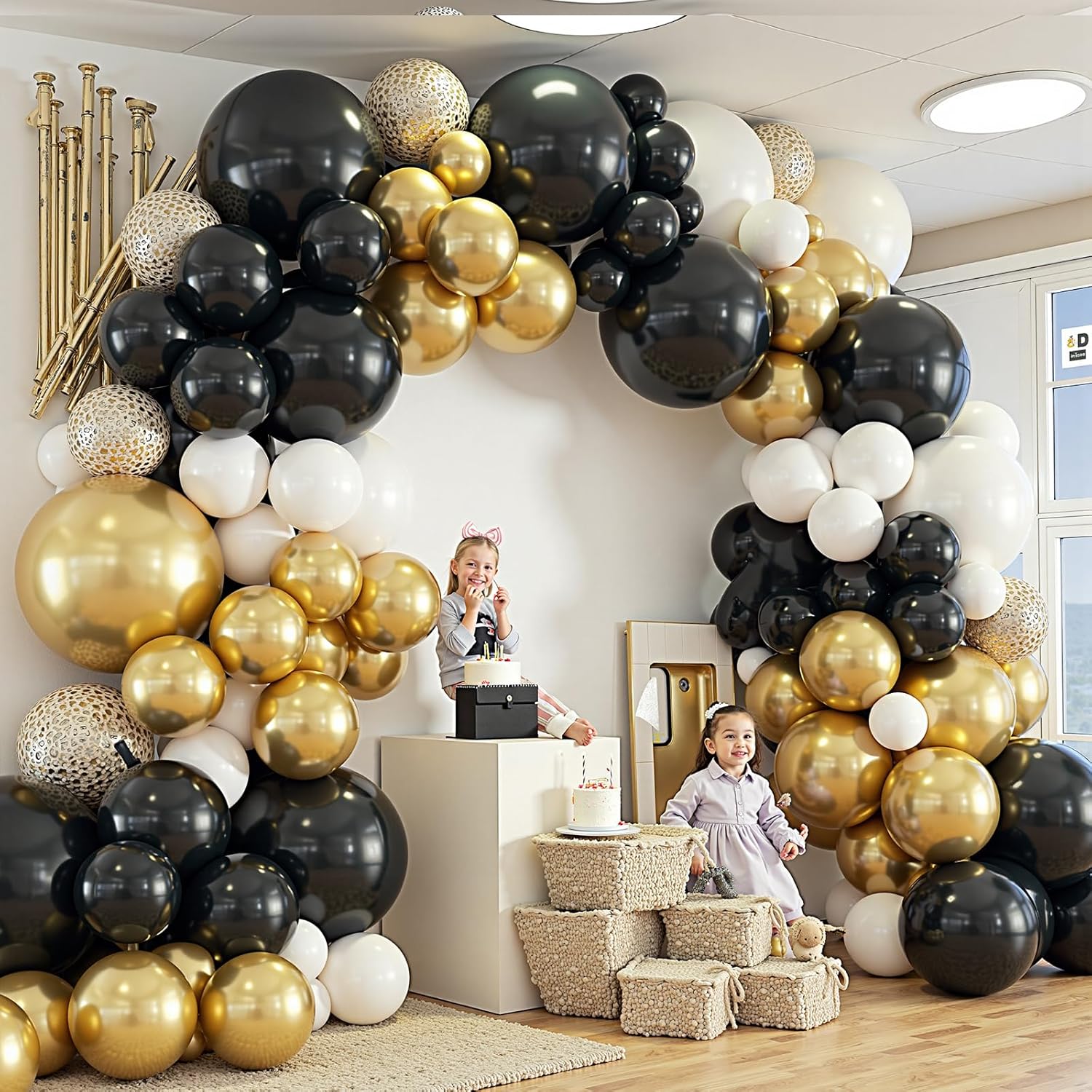 - CAUTIONS AND TIPS::There may be some smell of latex when the gold black and white balloons is just taken out, you can dry it in a cool and ventilated place. To avoid dust dimming the balloons, you can set up the balloon arch shortly before the event or use Balloon Shine Spray to keep them shiny.