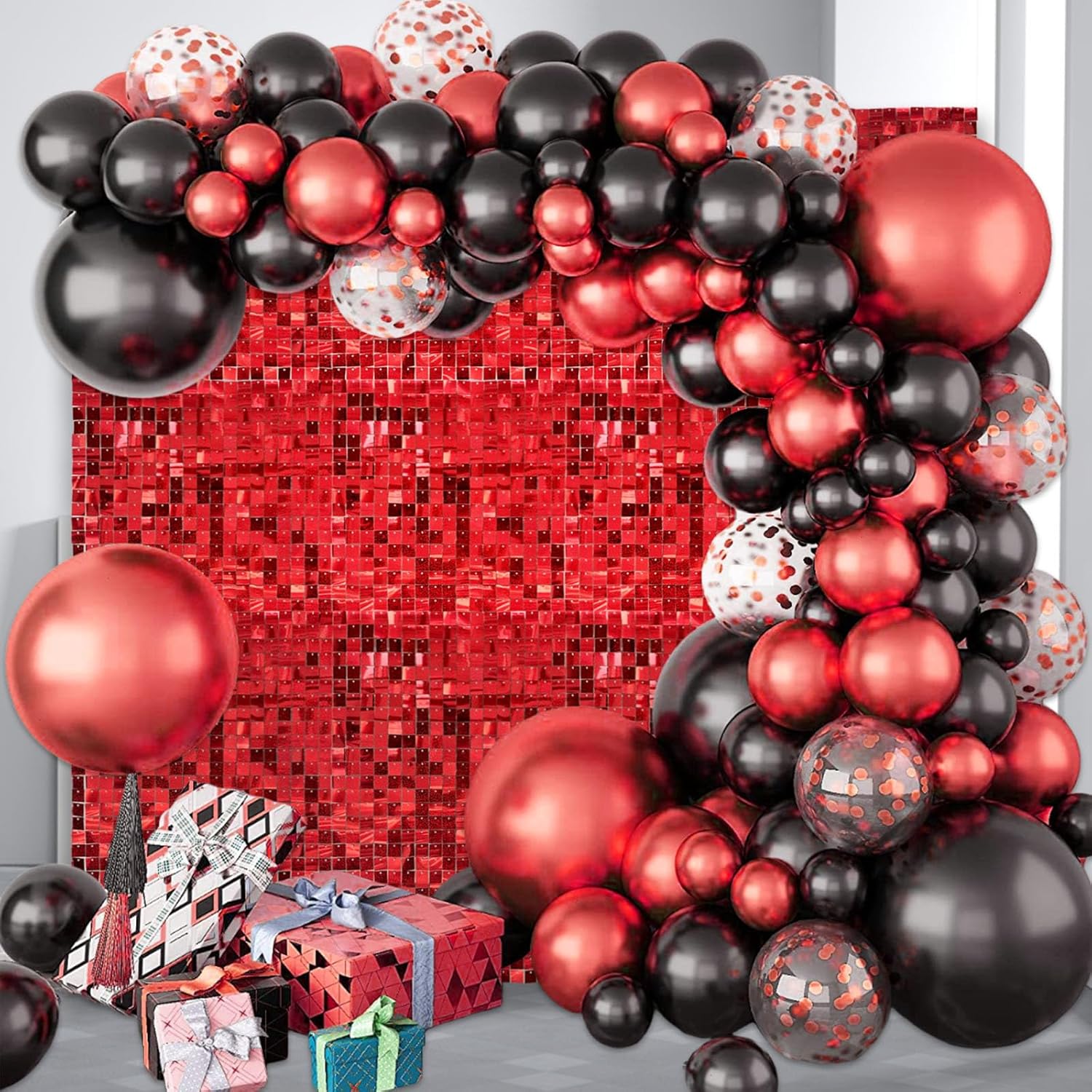 - 【Shimmer Wall Backdrops】The sequins of the red laser glitter wall panels will move with the wind and sparkle when the light hits them. You can match it with any balloon, wall, outdoor or indoor backdrop to a fantastic shiny photo backdrop, creating a nice shiny atmosphere for your party.