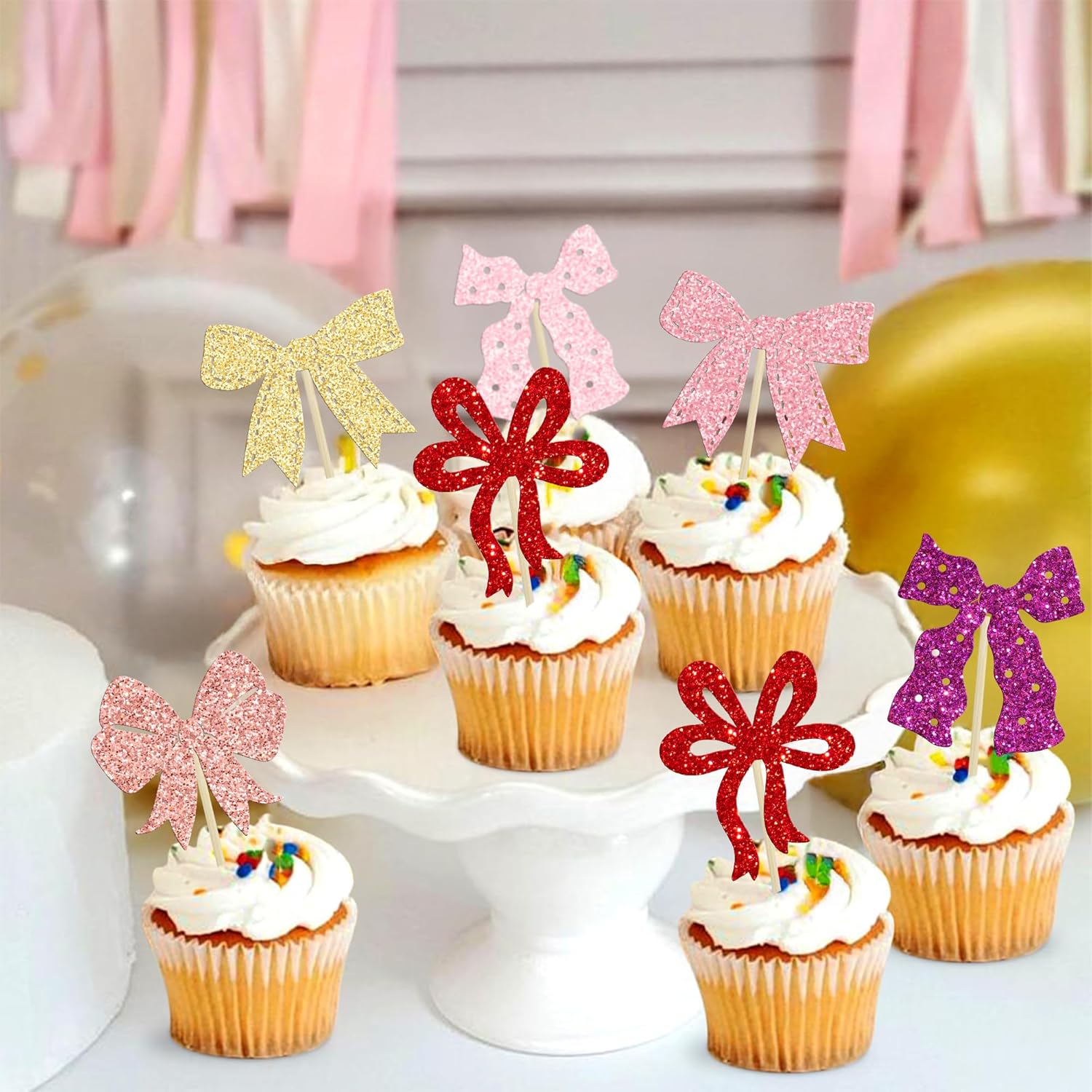 - 【Birthday Party Supplies】: 24Pcs Bow Cupcake Toppers are perfect for pink bow party, pink bow birthday party, coquette birthday party, baby shower, bridal shower, wedding, pink bachelorette party, family gathering party cupcake decorations, they will make your cupcake more attractive and bring the fun to your party, make your guests fall in love with them!