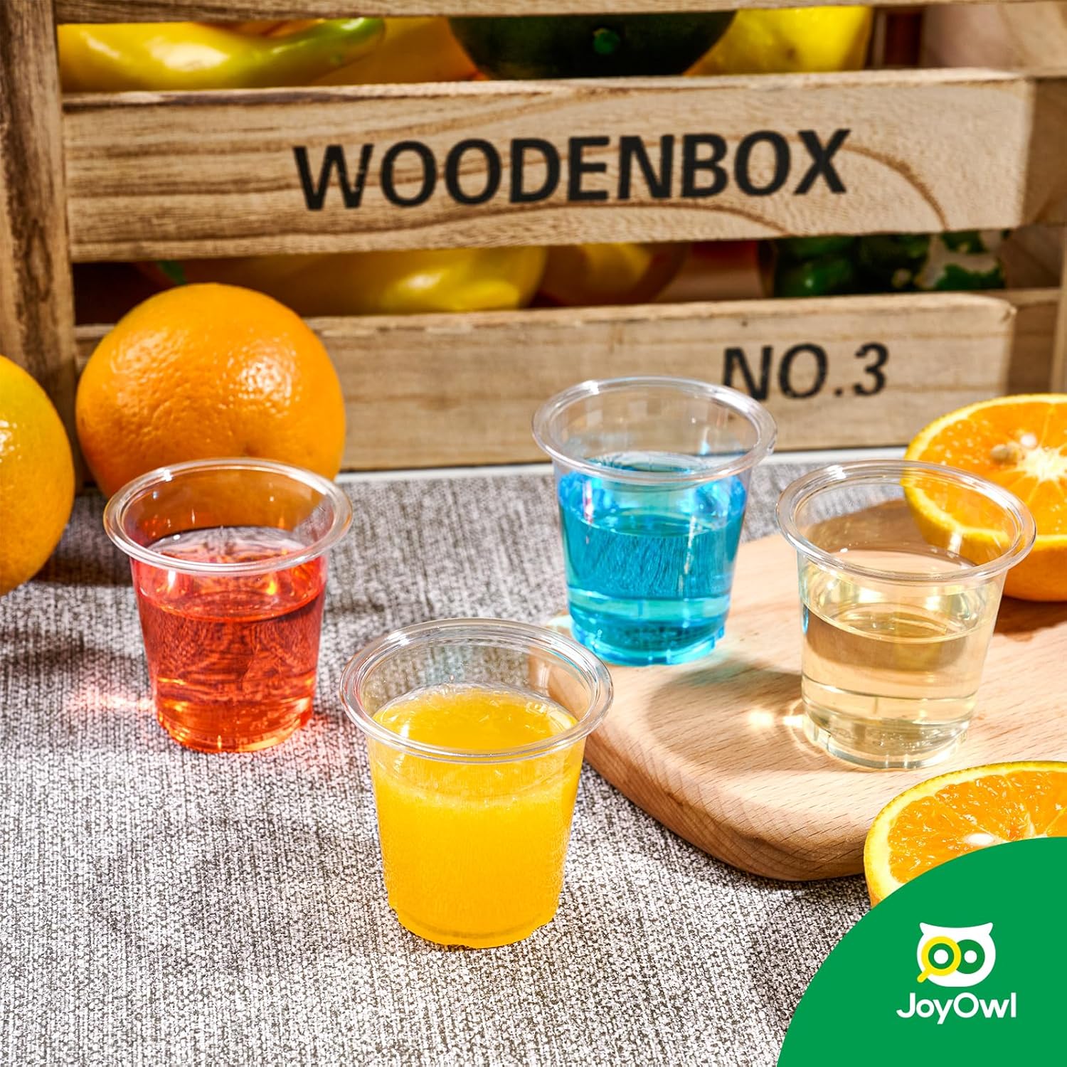 - Crystal Clear PET Plastic: These plastic shot cups are made from BPA-free PET material, featuring crystal-clear transparency and broken proof