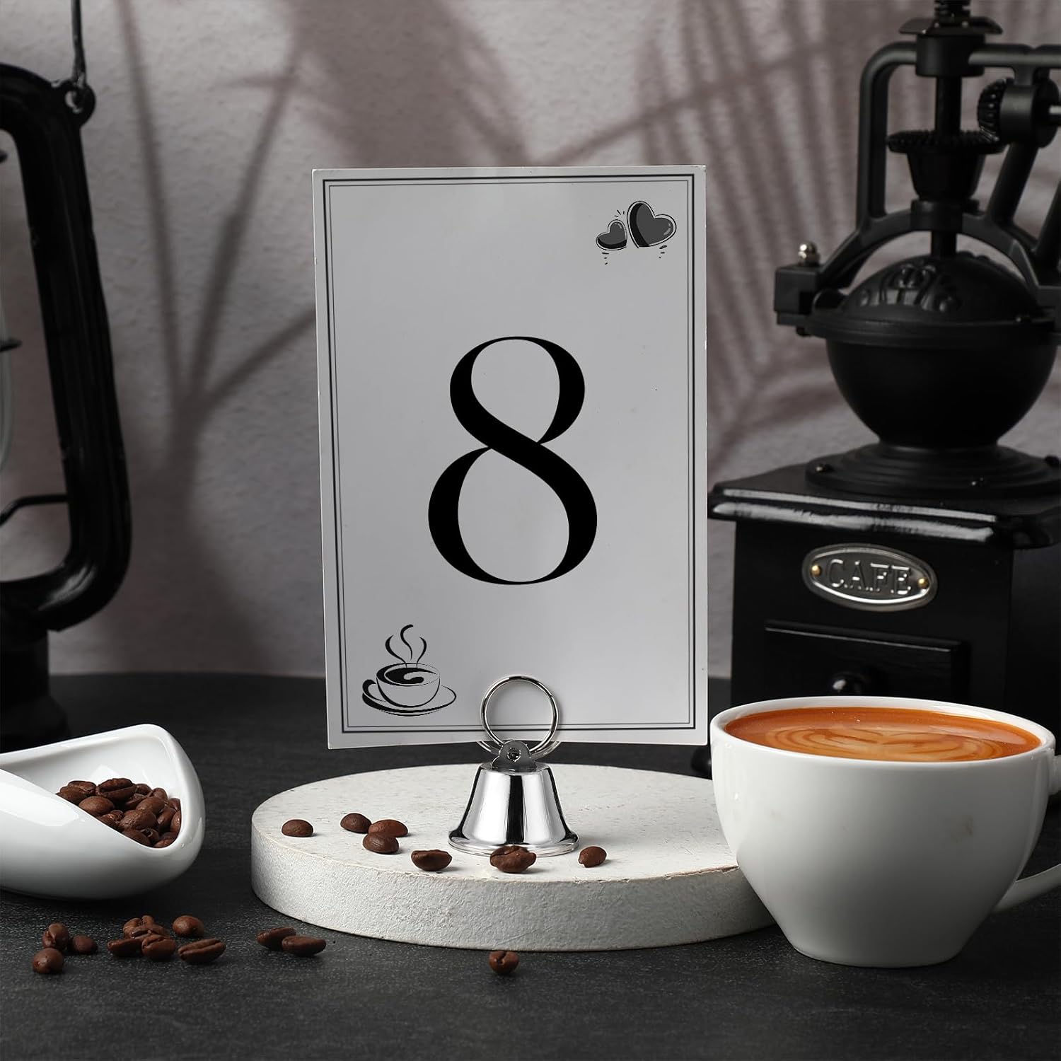 - Unique Bell Design: The bottom of wedding table number holders are in the shape of a bell, which is elegant and eye-catching. In addition, there is a built-in bell, which can make a crisp ringing sound when you shake it gently. It adds a warm and interactive experience to the party or wedding venue, and create a unique sense of ceremony