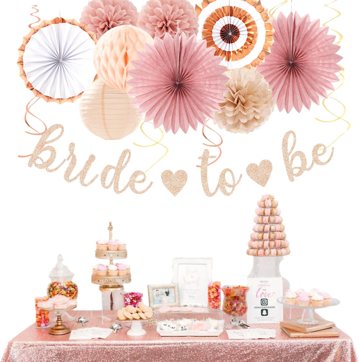 Blush-Pink Rose-Gold Bridal-Shower Party Decorations - 21pcs Bride to Be Sign Banner,Bachelorette Paper Lanterns Honeycomb,Wedding Streamers Garland,Fall Tissue Pom Poms Fans Decor Supplies Burgleda