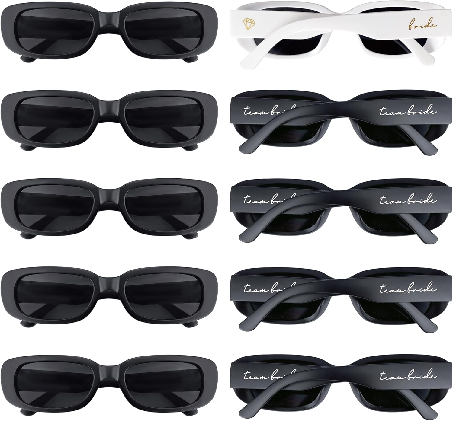 Bride Squad Bachelorette Party Favors 10 Pcs Team Bride Sunglasses Retro Rectangle Bridesmaid Gifts Sunglasses