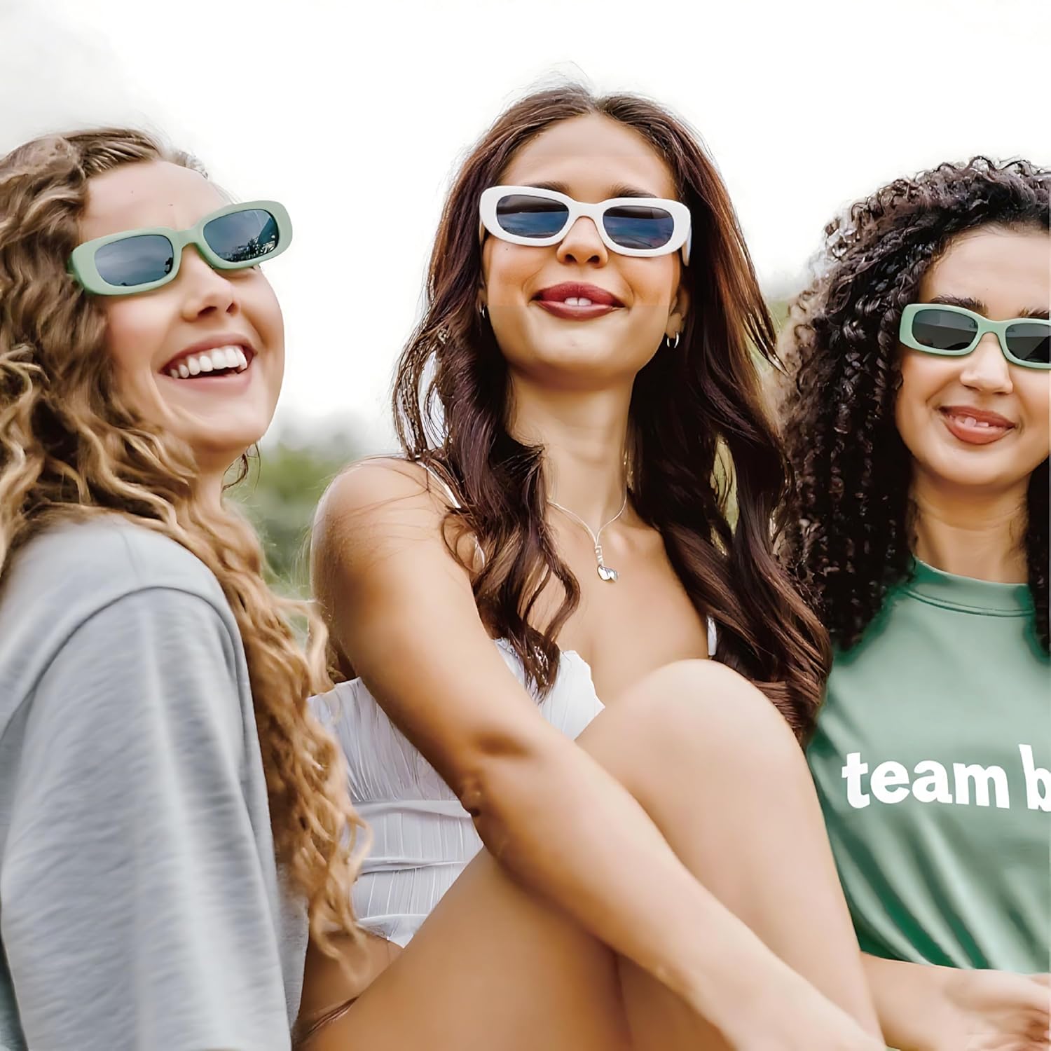 - Retro Charm: With a sleek rectangular frame, these bridesmaid sunglasses bring a nostalgic retro vibe that elevates any look. Their stylish design isn’t just for show—they effortlessly complement a range of outfits, whether you’re dressing up for a bachelorette party, posing at the bridal shower, or celebrating outdoors on the wedding day.
