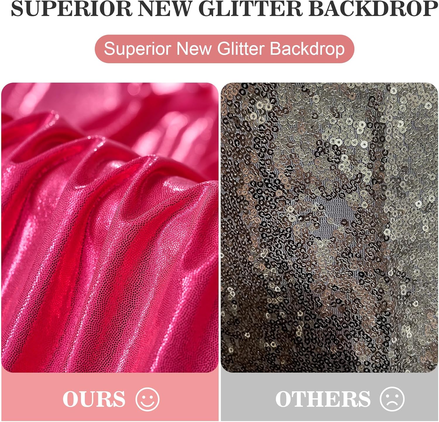 - New Glitter Hot Pink Backdrop Fabric: Made from high-quality soft polyester and glitter, thicker and more durable than standard sequin backdrops, adding charm and sparkle to your parties.