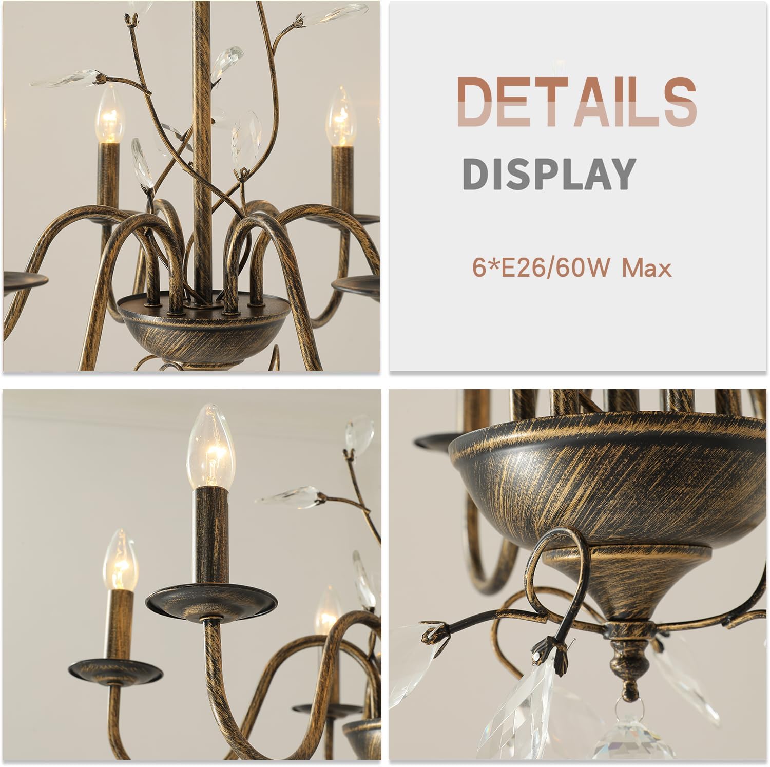 - 💚【Dimmable Functionality】Compatible with 6 bulbs (max 60W each) in E12 sockets. Works with dimmable bulbs and switches (bulbs and switches sold separately)
