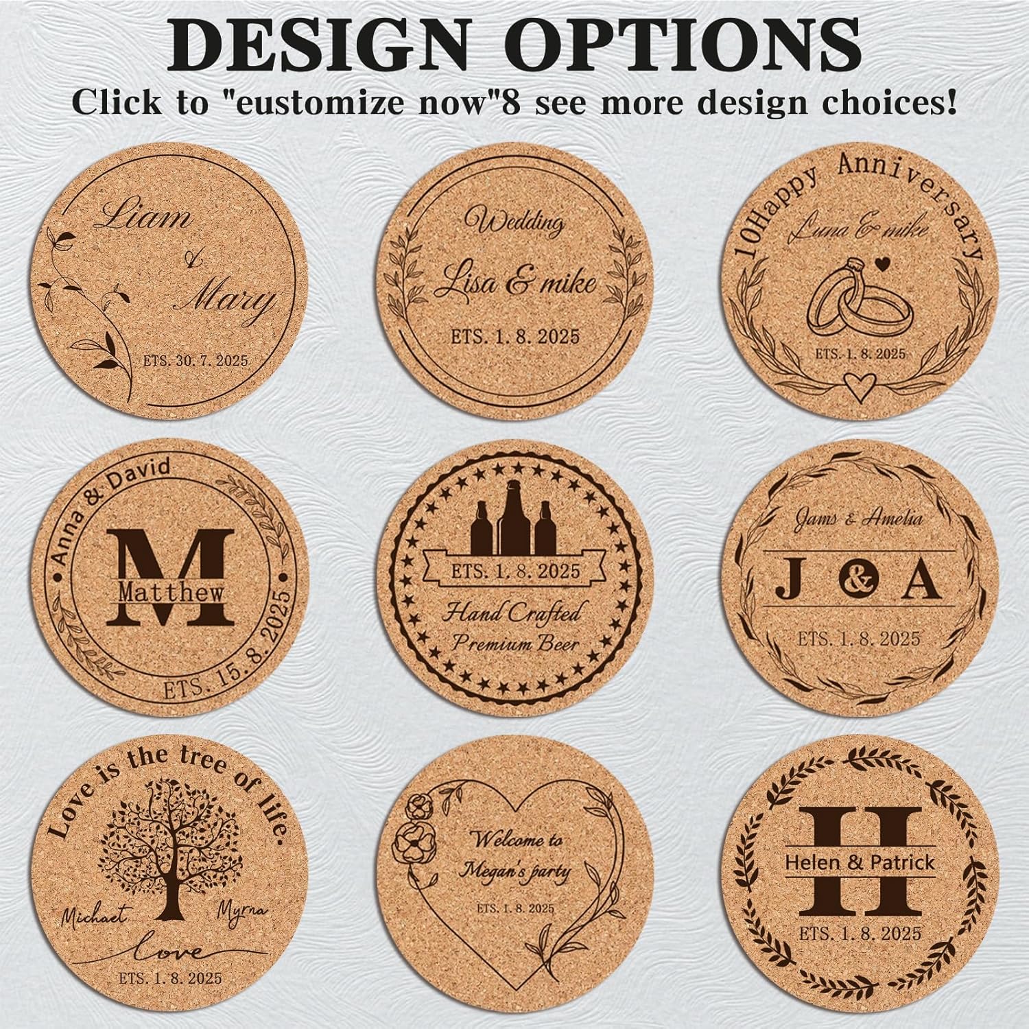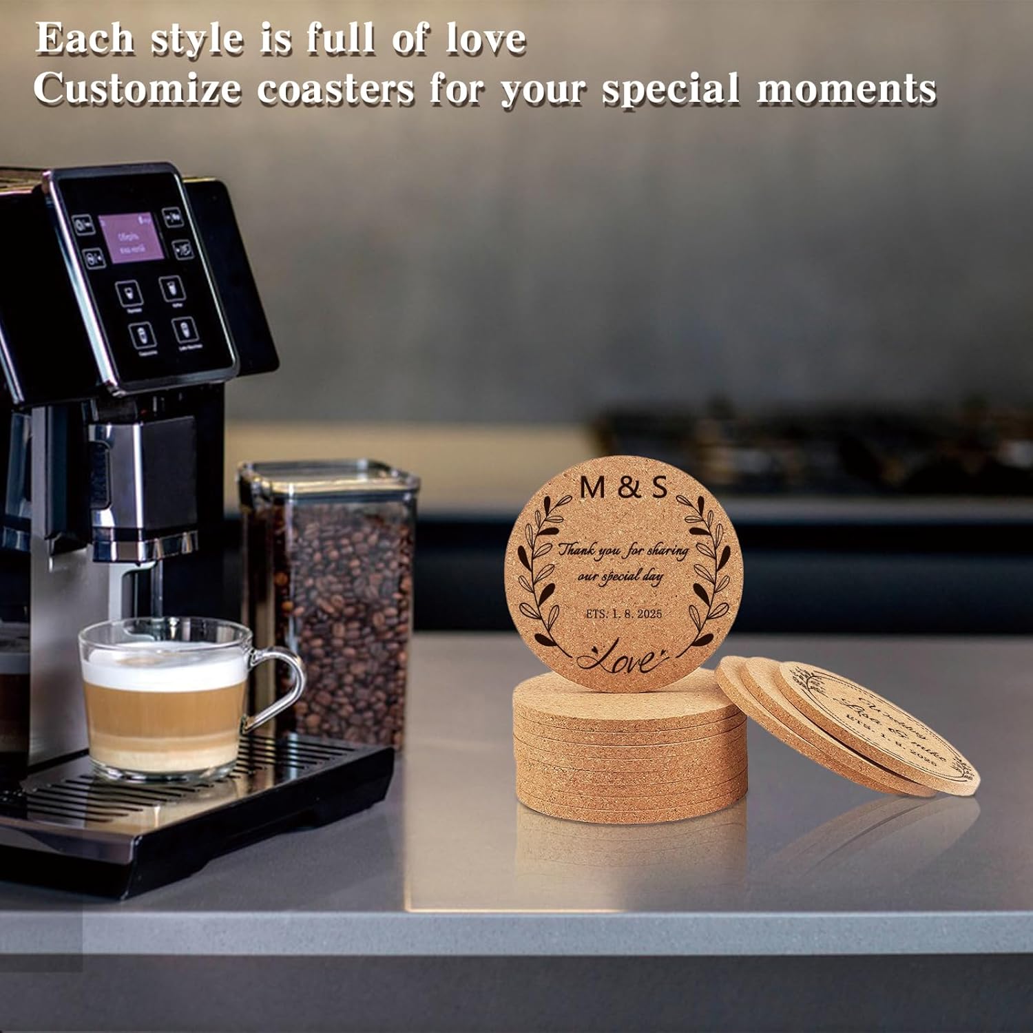 - Bulk Custom Cork Coasters for Weddings and Events:Planning a large gathering? Our wedding favors for guests bulk 100 option ensures you have enough custom cork coasters for all your guests. These personalized coasters bulk sets are cost-effective and perfect for rustic wedding favors or corporate giveaways