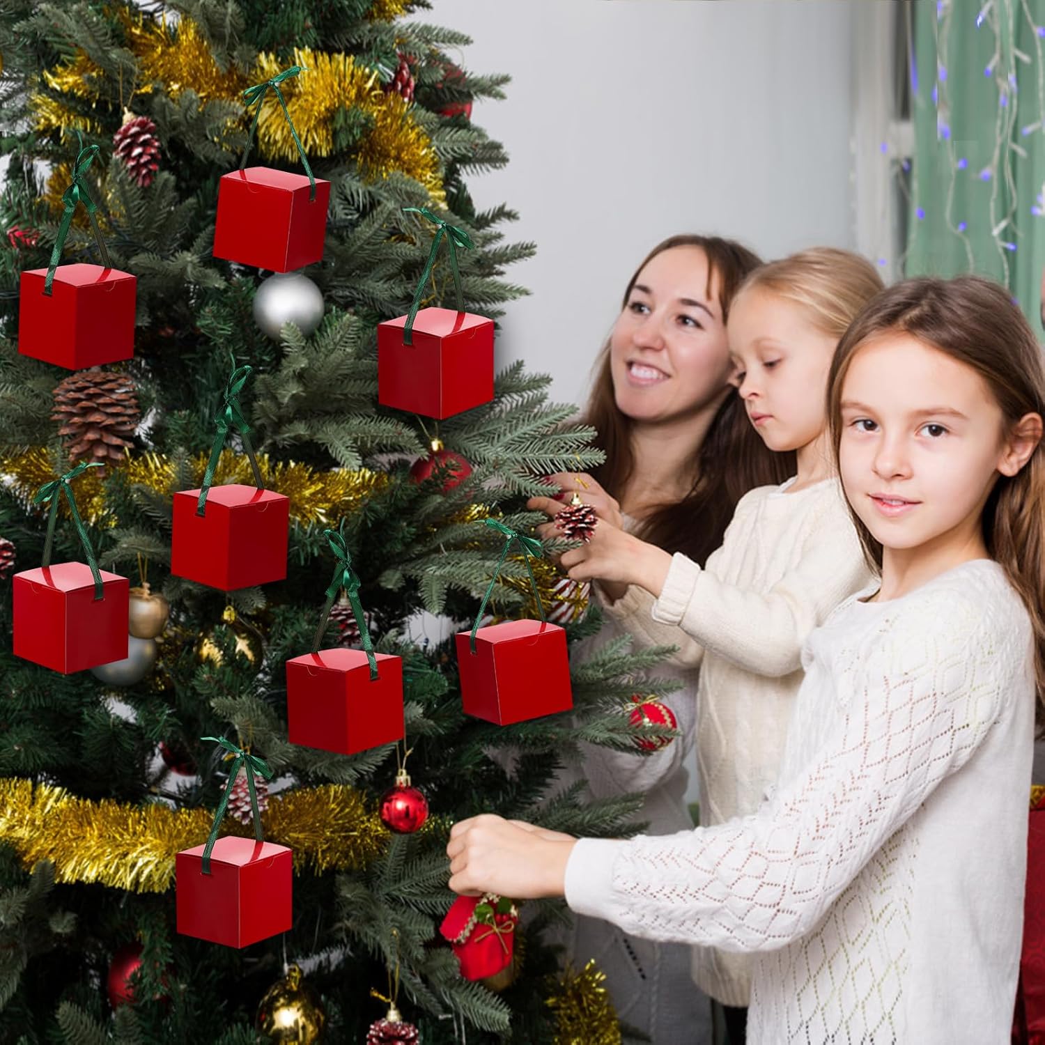 - What You'll Get: 60pcs red favor boxes, 60pcs green ribbons, 1 pcs manual. you can tie a cross or bow knot on top, which will be more elegant and romantic for party