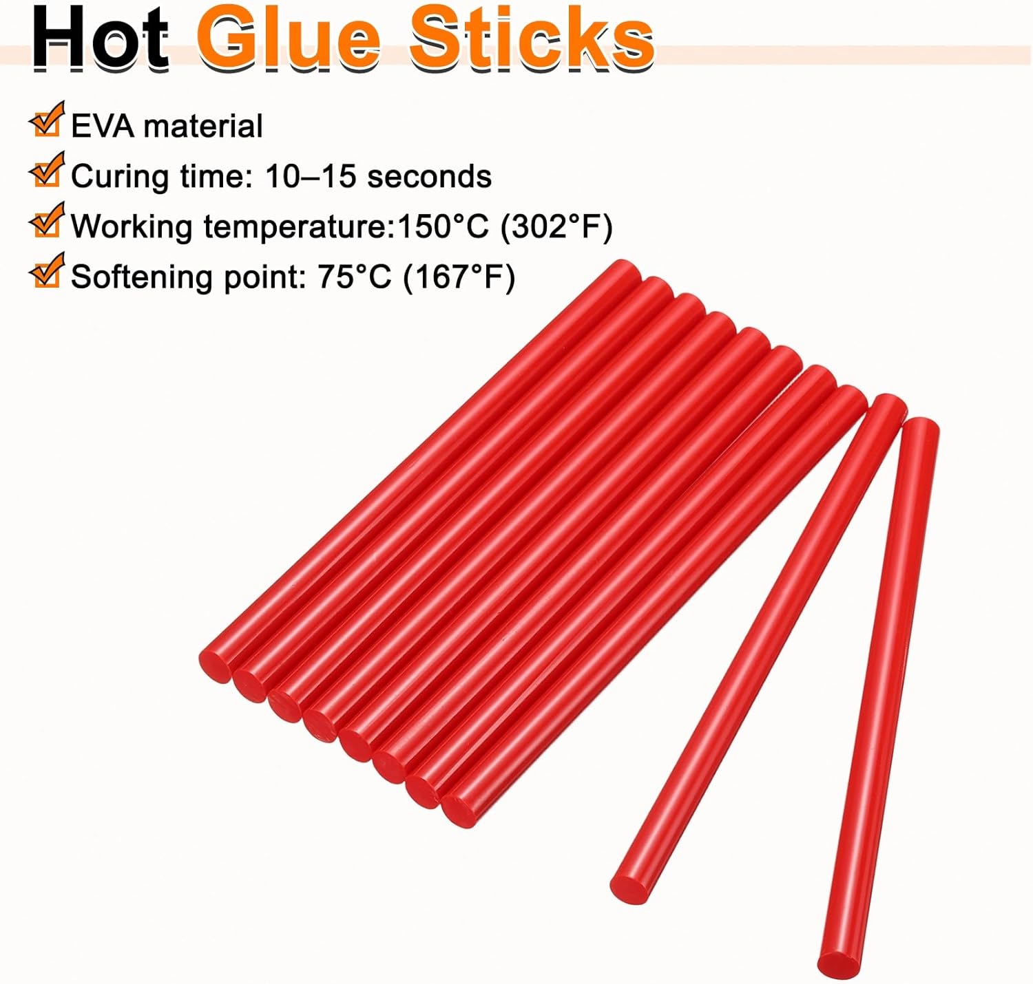 HARFINGTON 10pcs Hot Glue Sticks 0.43" Dia x 7.87" Long EVA Mini Hot Melt Adhesive Glue Stick for Hot Melt Gun Wood Plastic Glass Flowers Fabrics Foam, Red