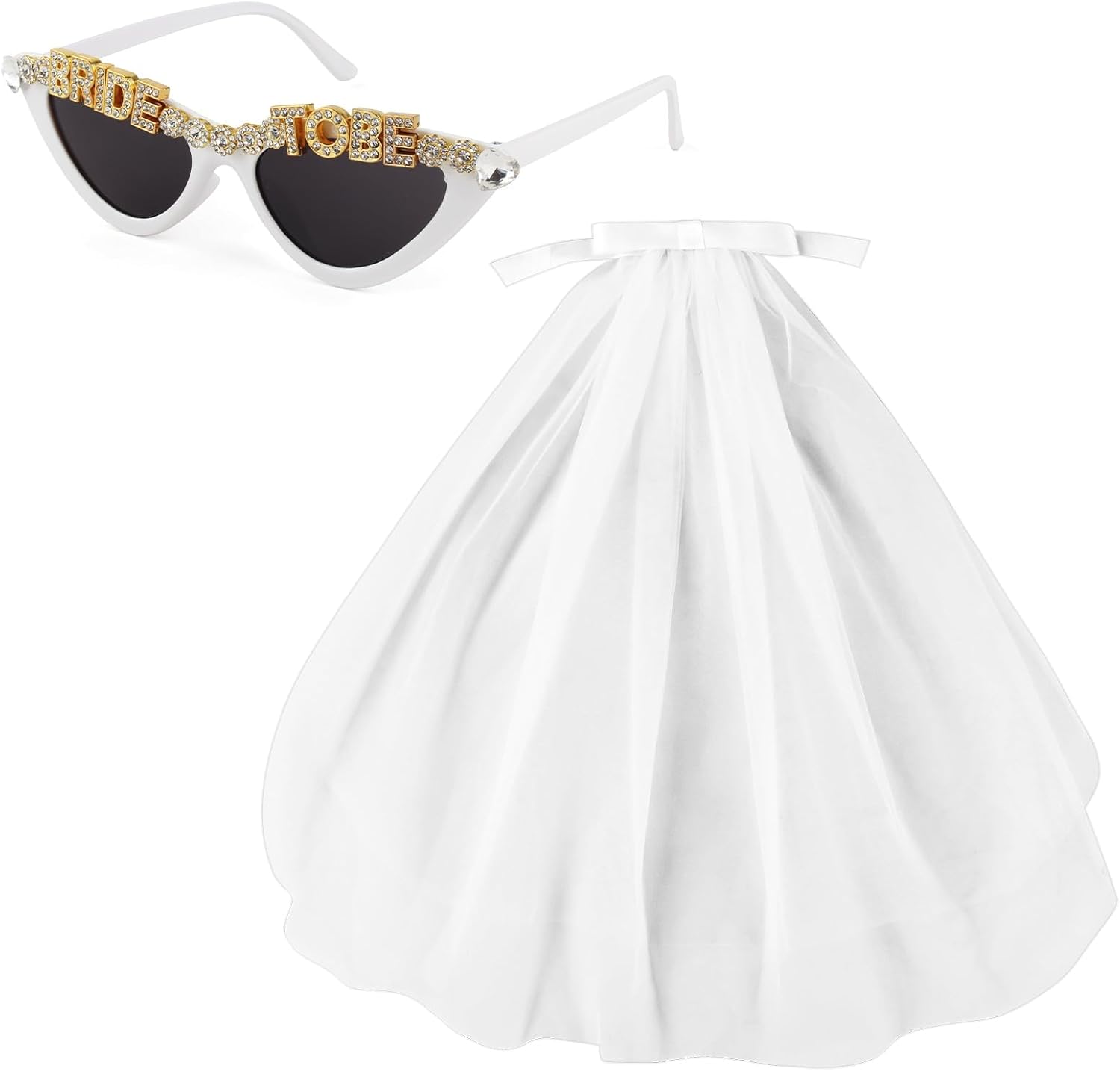 - Premium Quality: Our veil for bachelorette party is made of white fabric. The crystal glass sunglasses are crafted from lightweight plastic and crystal glass, with one-piece nose pad design for a comfy fit.