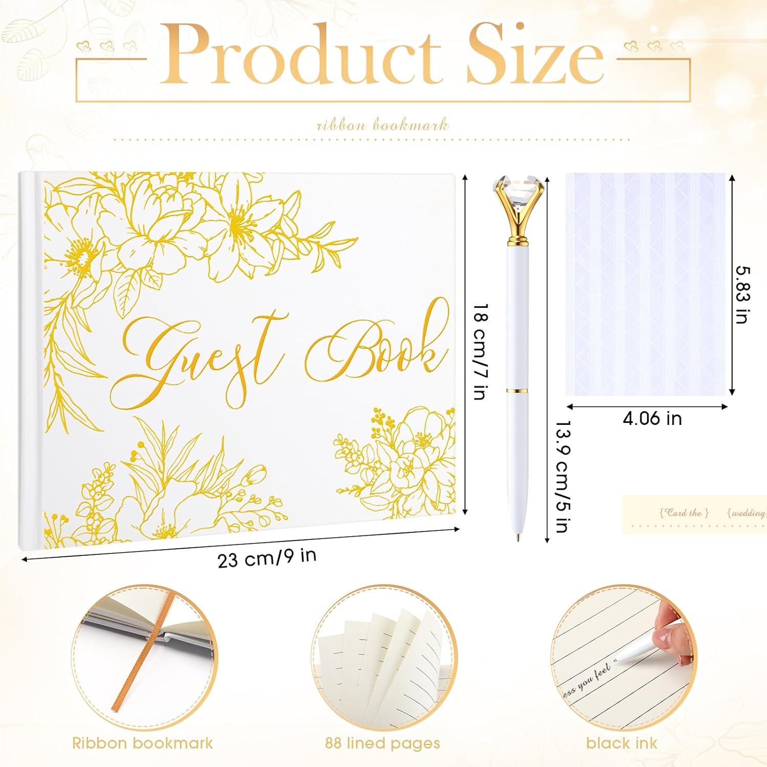 - Elegant Craftsmanship: embrace timeless elegance with wedding sign book, beautifully adorned with gold foil flowers and texts, charming and serve as both a treasured keepsake and tabletop decor within your home for years to come; It displays the warm wishes and memories shared by your guests while also decorating your places