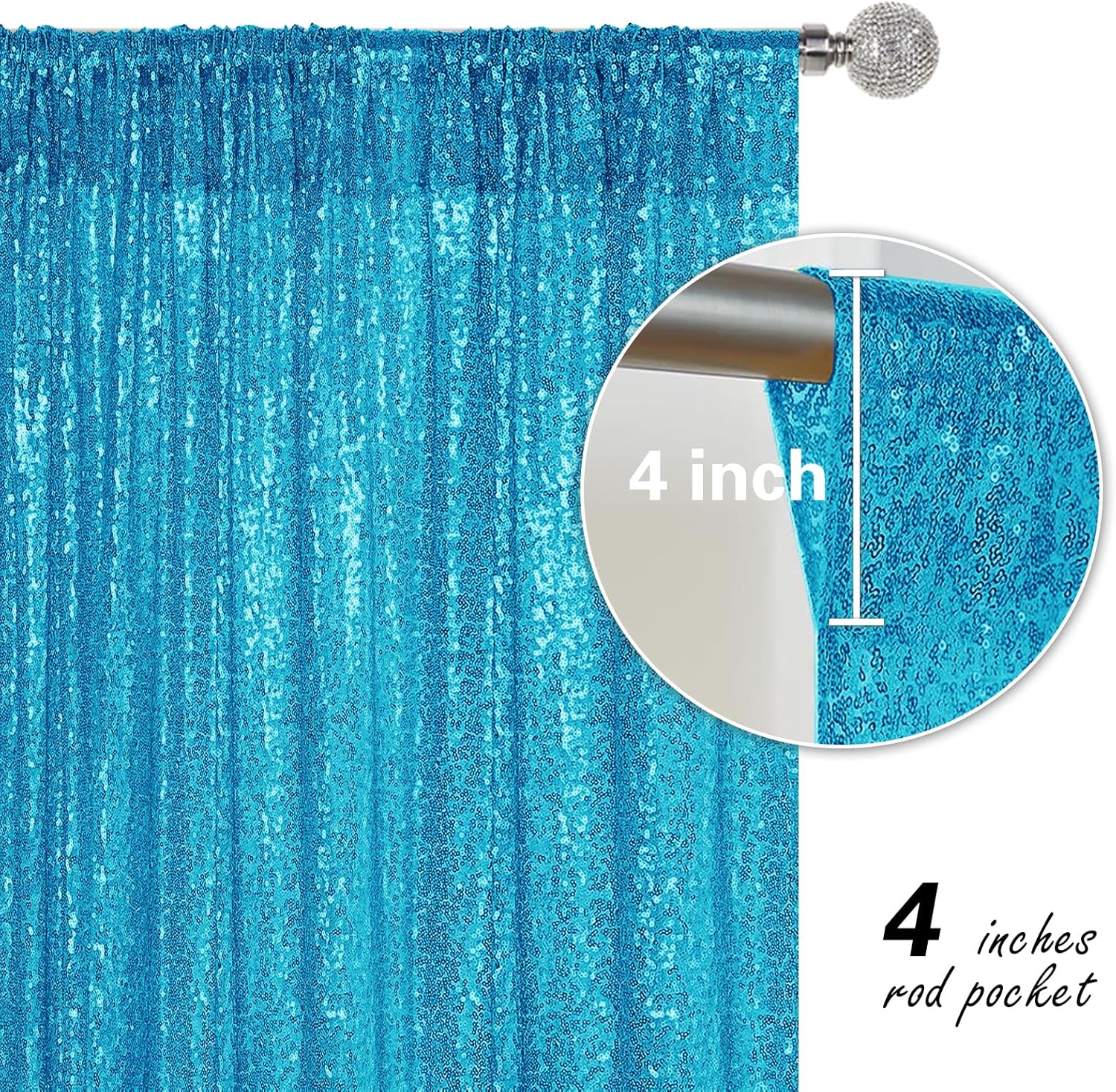 Turquoise Sequin Backdrop Curtain 2 Pieces 2FTx8FT Glitter Photography Backdrop for Party Wedding Birthday Christmas Decorations