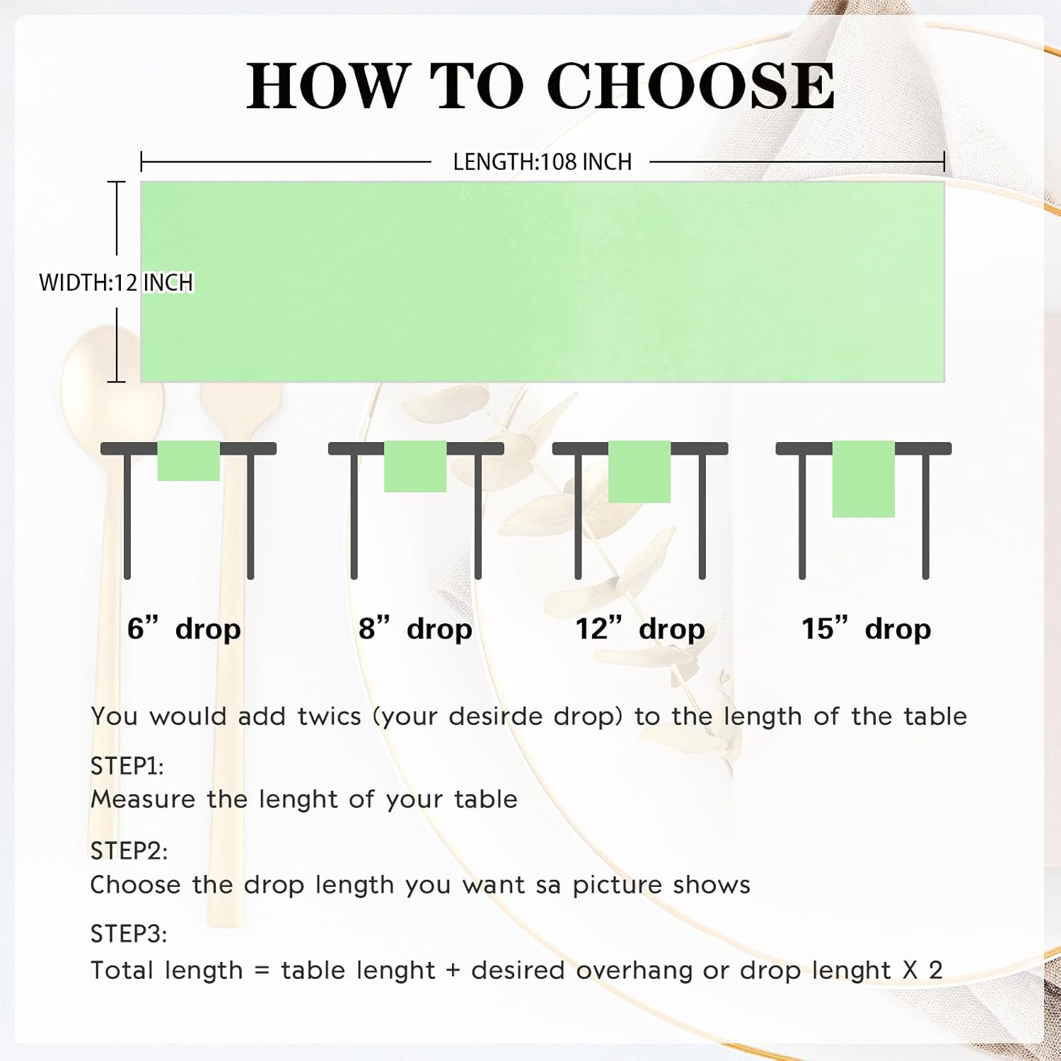 - Package Include: Each green satin table runner measures 12" x 108", total 10 packs, which is appropriate for rectangle or round tables that can seat 8-10 people.
