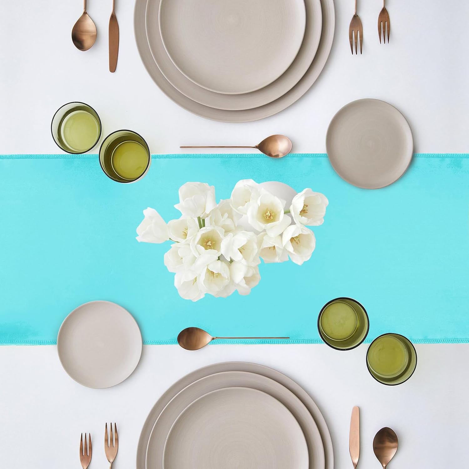 10 Pack Satin Table Runner 12 x 108 Inch Long Turquoise Silk Table Runner for Wedding Party Banquet Birthday Decoration