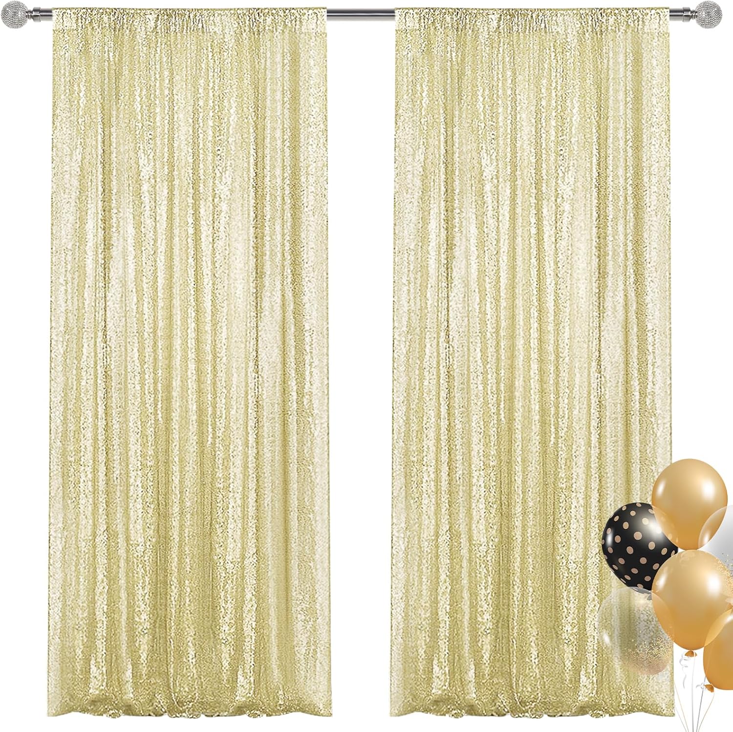 Champagne Sequin Backdrop Curtain 2 Pieces 2FTx8FT Glitter Photography Backdrop for Party Wedding Birthday Christmas Decorations