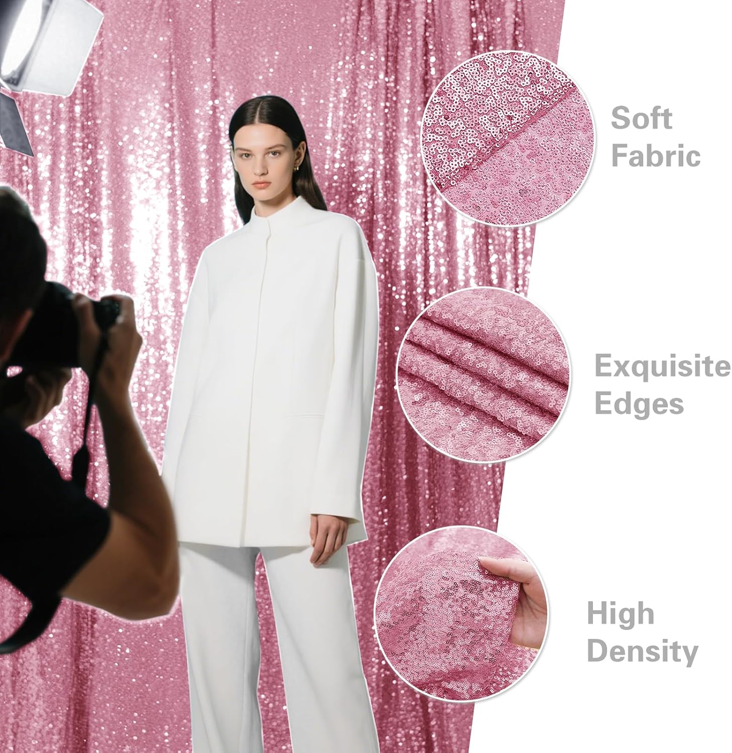 Pink Sequin Backdrop Curtain 4 Pieces 2FTx8FT Glitter Photography Backdrop for Party Wedding Birthday Christmas Decorations