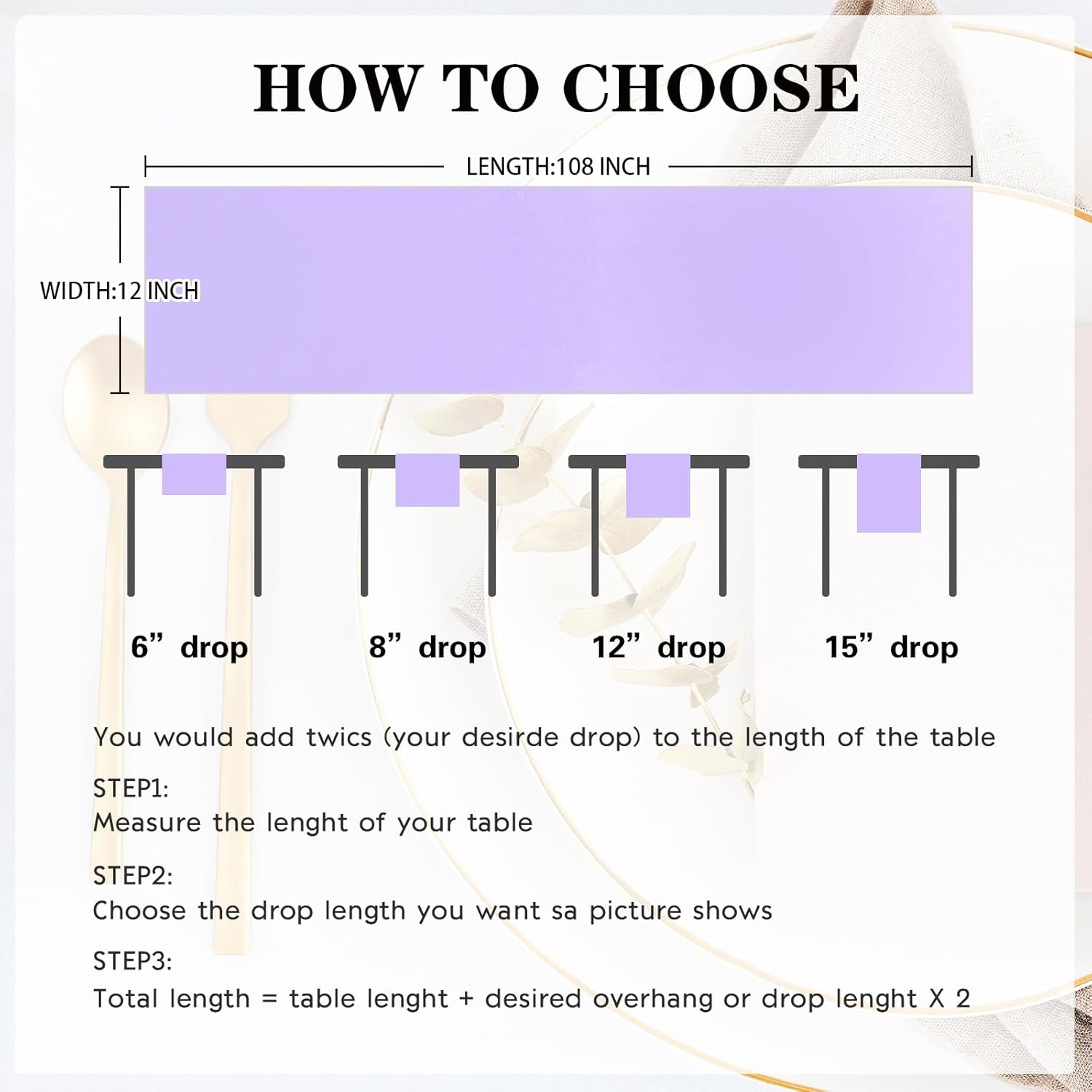 - Package Include: Each lavender satin table runner measures 12" x 108", total 10 packs, which is appropriate for rectangle or round tables that can seat 8-10 people.