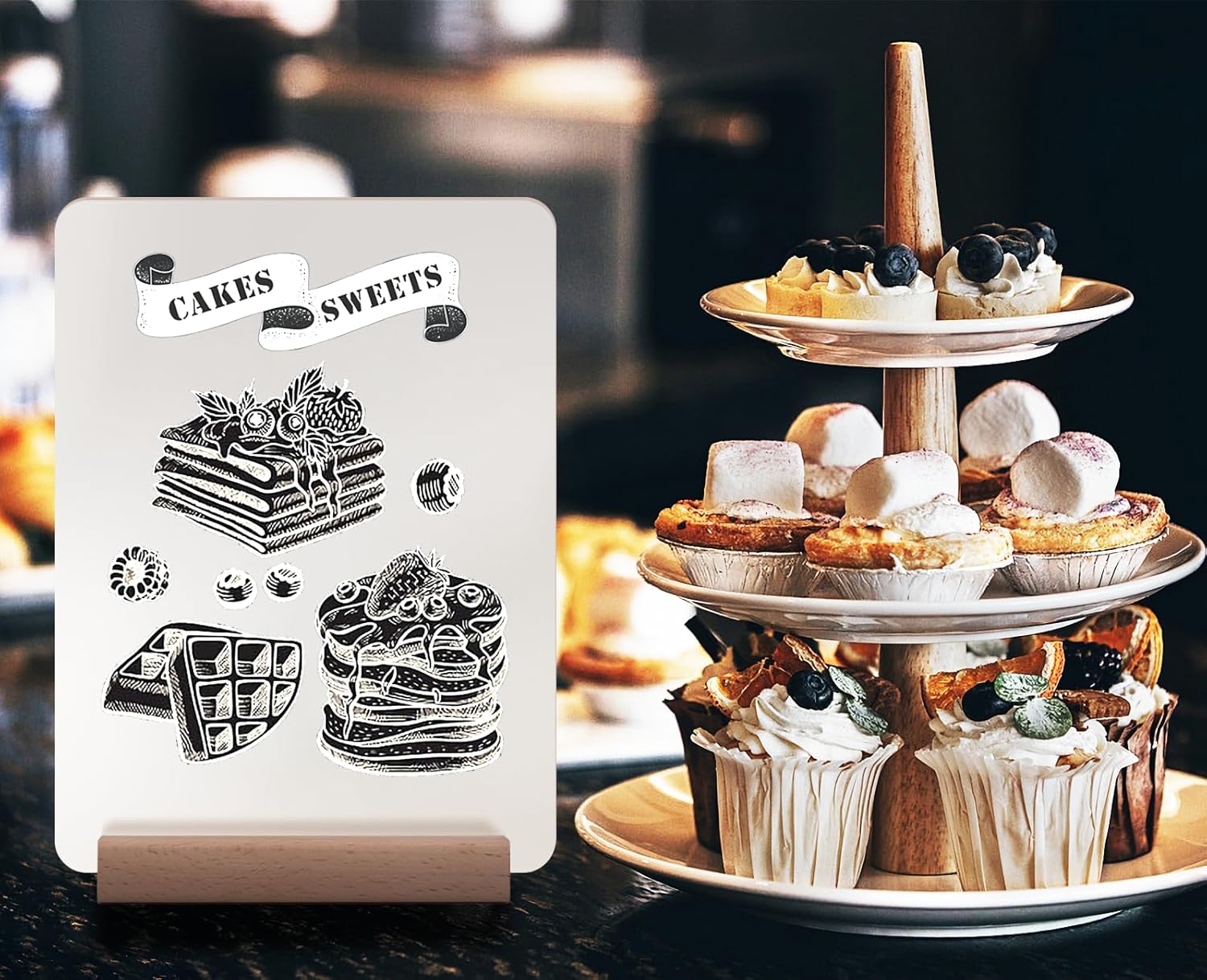 - DELICATE DESIGN - Glass-look acrylic is all the rage! Our frosted Rectangle-shaped acrylic blanks paired with stands add a stylish and modern look to your event. The combination of the sturdy, wide wooden base and the acrylic blank ensures that any table number, card, or photo you create and display will always be upright during your event. They form the perfect foundation for creating gift table signs, picture displays, or wedding card holders.