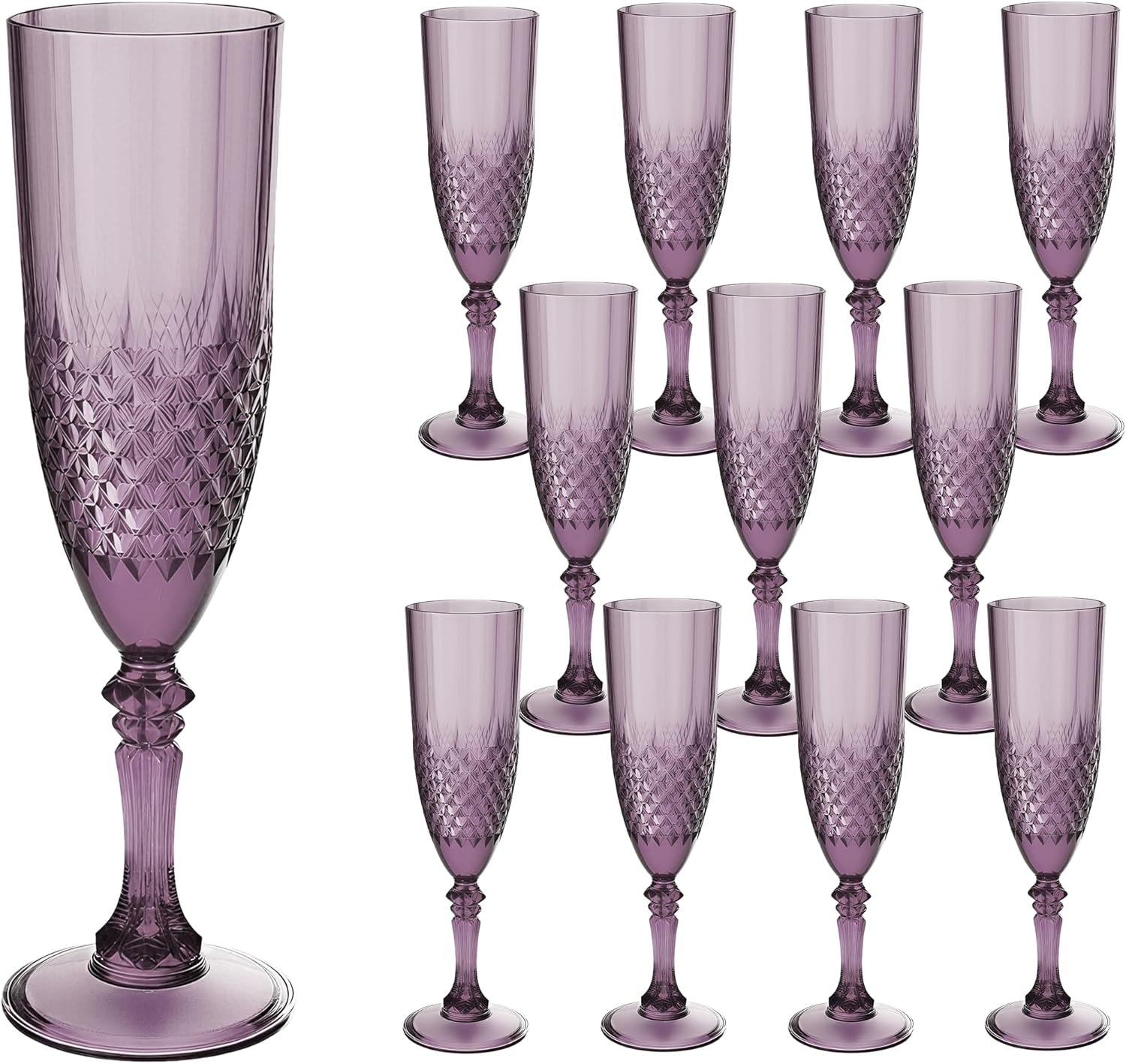 - Charming Set: Champagne flutes set include 12 retro-style dark purple champagne plastic wine glasses, providing ample quantity to meet your daily use and replacement needs. A suitable champagne cup is the icing on the cake. Plastic wine glasses not only carry the wine, but also carries the laughter and blessings