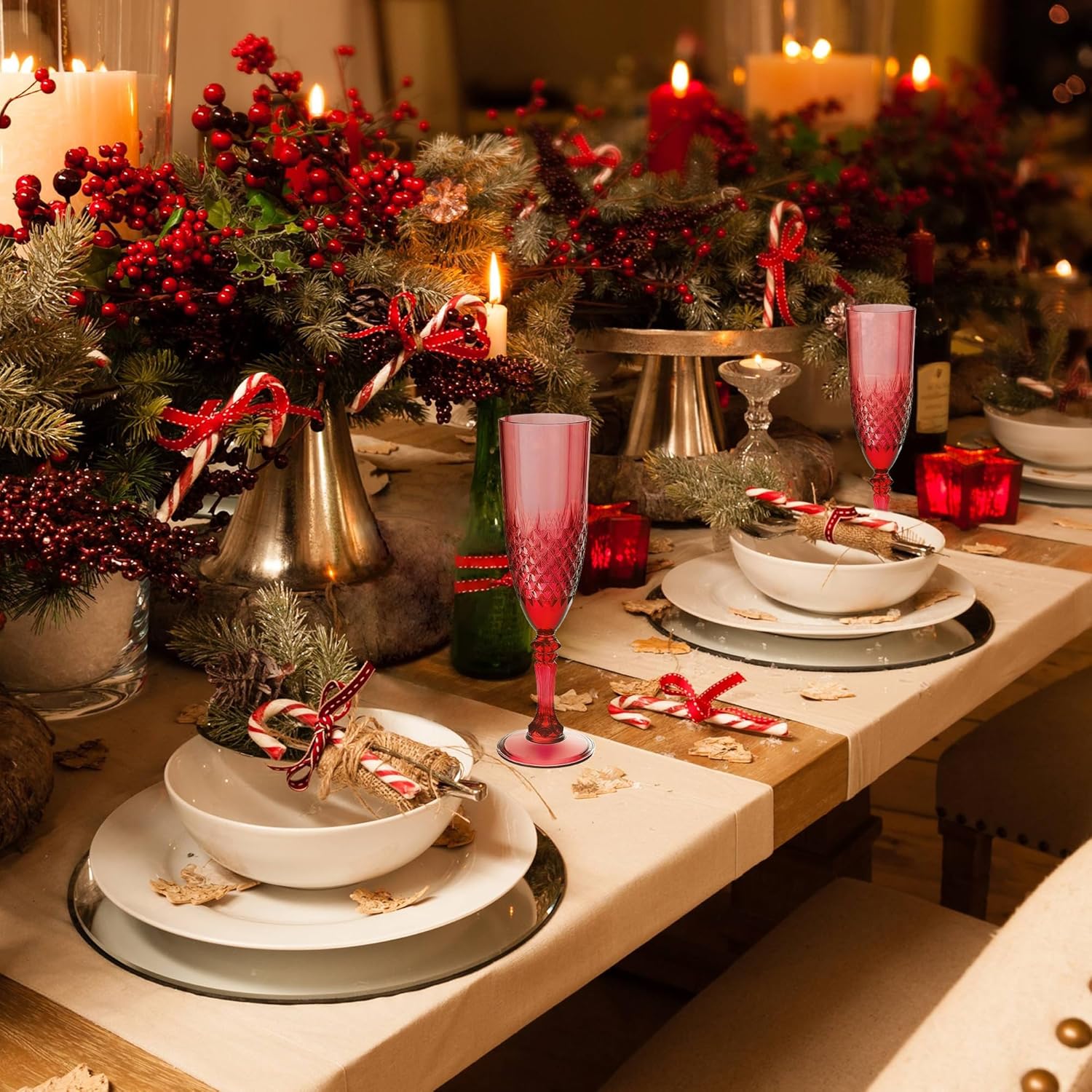Plastic Champagne Flutes, 12PCS Dark Red Wine Glasses Goblets Cups Reusable Flute, for Christmas Weddings Bachelor Parties Toasting and Events(12, Dark Red)