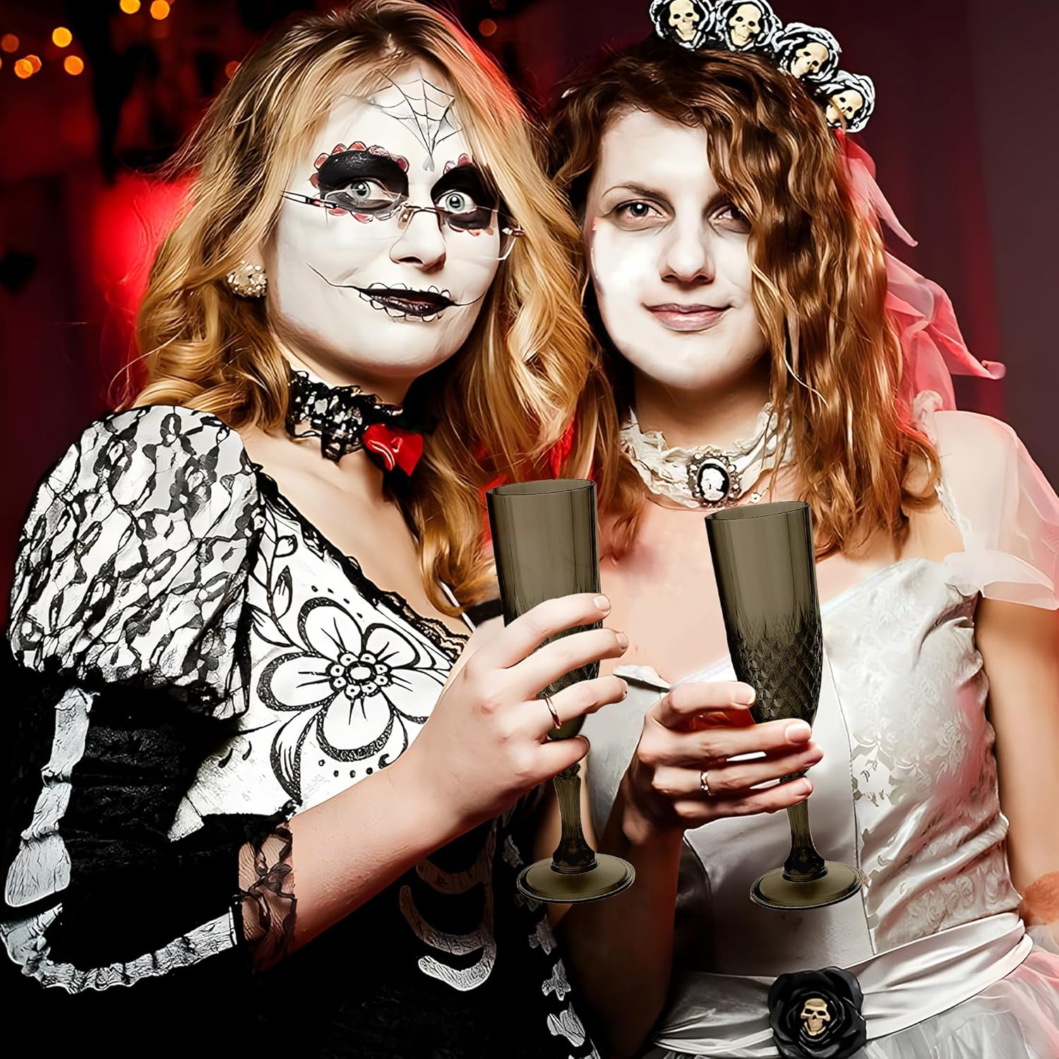 Plastic Champagne Flutes, 24PCS Black Wine Glasses Goblets Cups Reusable Flute, for Halloween Weddings Bachelor Parties Toasting and Events (24, Black)
