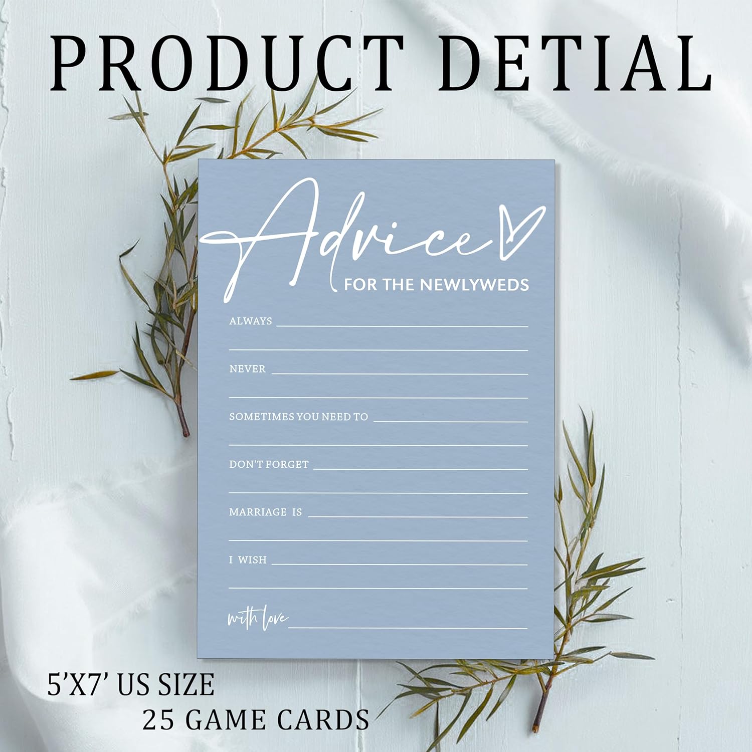 Wedding Advice Cards - Bdvice and Wishes for the Newlyweds Mr and Mrs Bride & Groom Perfect for Bridal Shower Wedding Games and Guest Book Alternative Pack of 25 Minimalist Blue 5x7 Inch Cards - B04